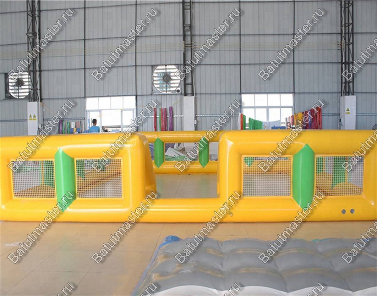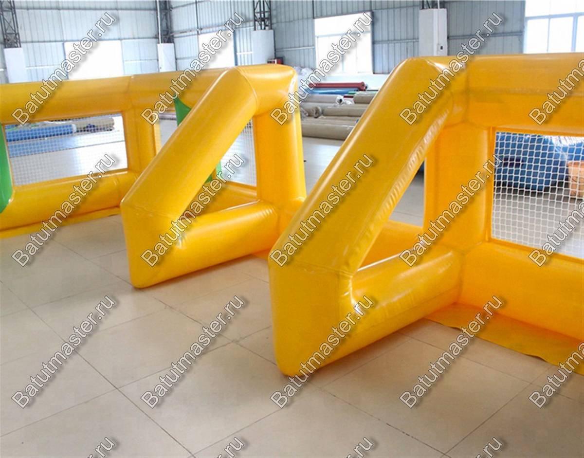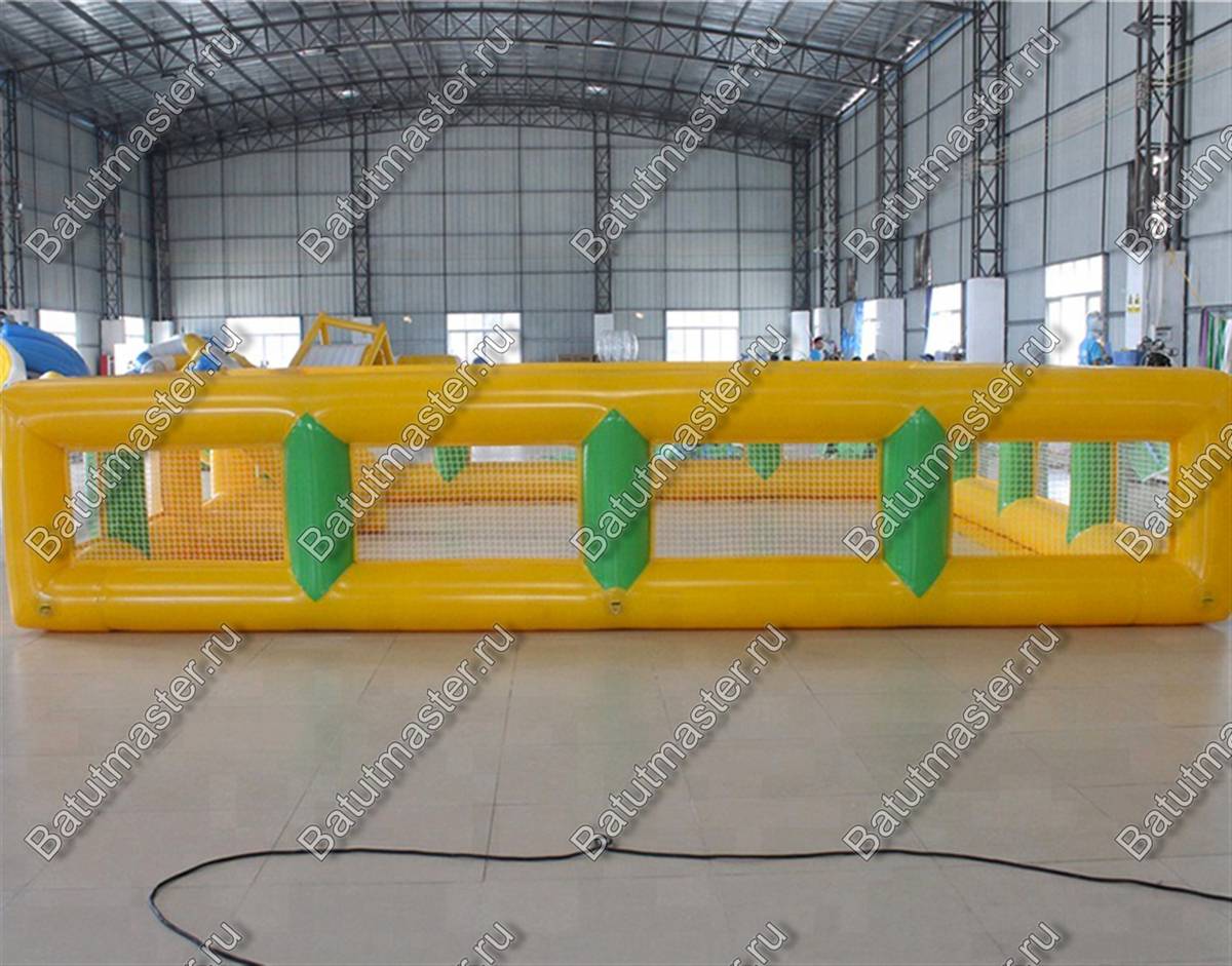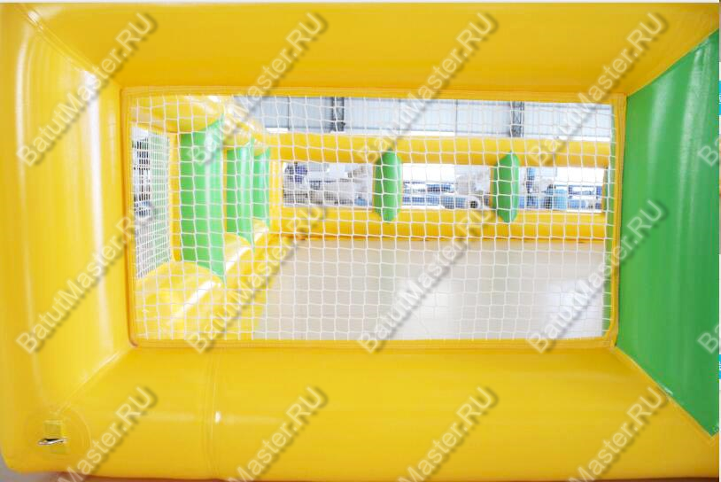 Надувная игровая комната сделана из плотного поливинилхлорида и отлично противостоит различным ударам. Стоит отметить, что все материалы экологически чистые и не токсичные. Конструкция не только полезная, но и безопасная, так как состоит только из надувных бортов и оснований. Между колоннами натянута прочная сетка.