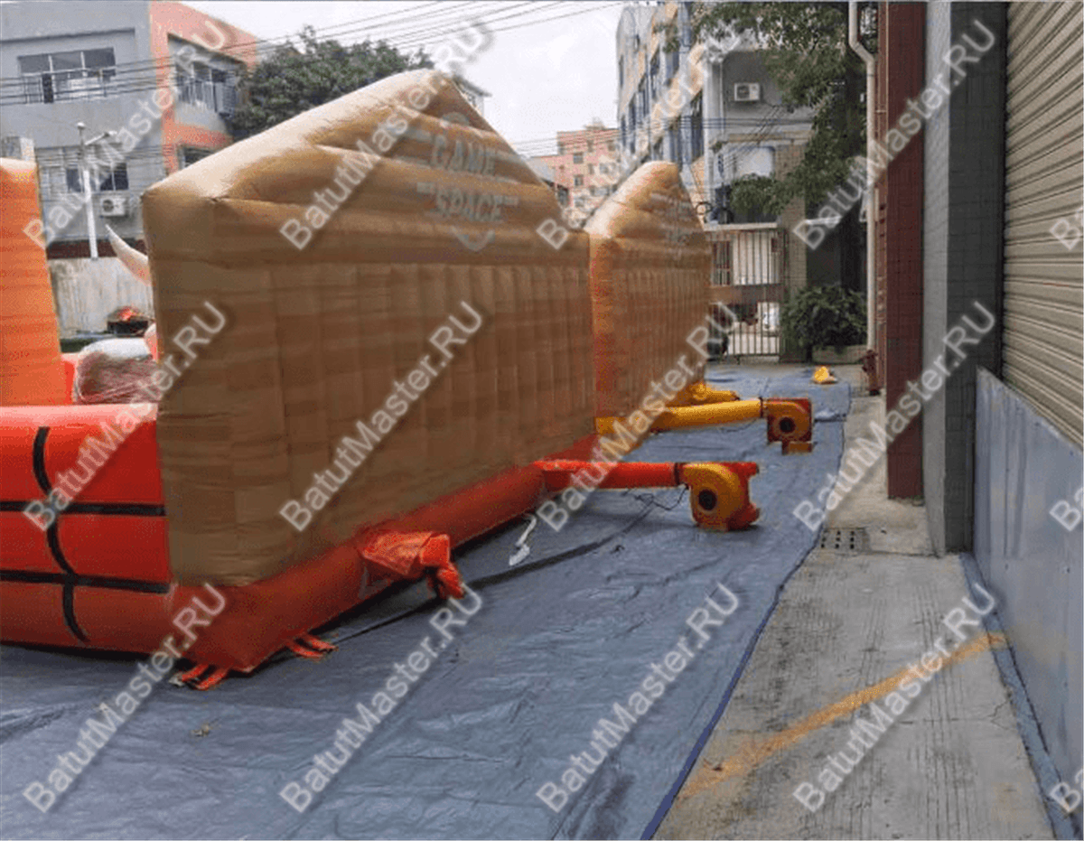 Также такой батут очень просто перевозить вместе с самим механическим быком, так как в спущенном состоянии он не занимает много места.