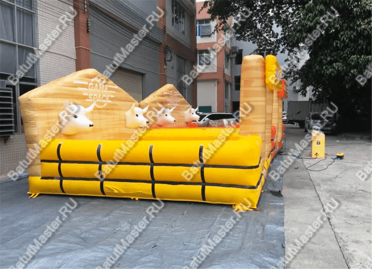 Ярким примером хорошей площадки для родео можно назвать надувной батут «Дикое Родео». Такая площадка станет настоящей приманкой для посетителей, так как этот батут имеет очень красивые декорации, передающие дух родео. Батут выглядит как деревянный загон для быка с большой вывеской на входе. Находясь в седле быка внутри такого батута, посетители смогу почувствовать себя настоящим ковбоем.