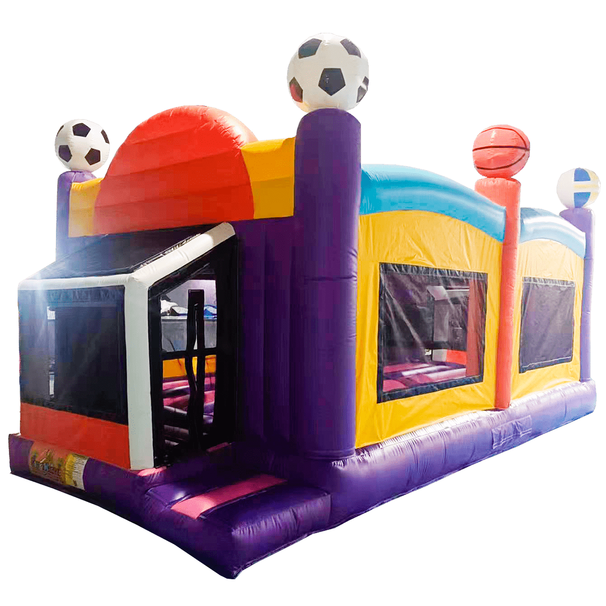 Локацию можно устанавливать на улице или в помещении. Она не выгорит на солнце и не пострадает от интенсивной эксплуатации, так как сделана из качественного и плотного пвх.