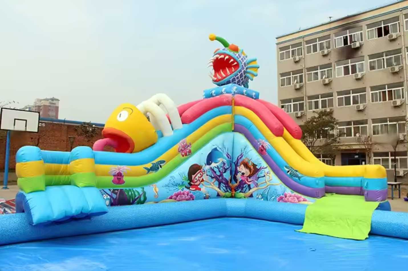 Если вы ищете способ увеличить поток посетителей и монетизацию летней площадки, наземный надувной аквапарк «Пиранья» 8×8×6,2 м — практичное и зрелищное решение, которое сразу превращает любую локацию в точку притяжения. Яркая палитра — жёлтый, зелёный и голубой — считывается издалека и работает как бесплатный «маяк» для семейной аудитории. Тематика моря с дружелюбными персонажами и акцентом на осьминогов задаёт лёгкую атмосферу праздника и отлично вписывается в пляжные зоны, загородные клубы, турбазы, летние площадки ресторанов, аквапарки и торгово-развлекательные центры с открытыми бассейнами.