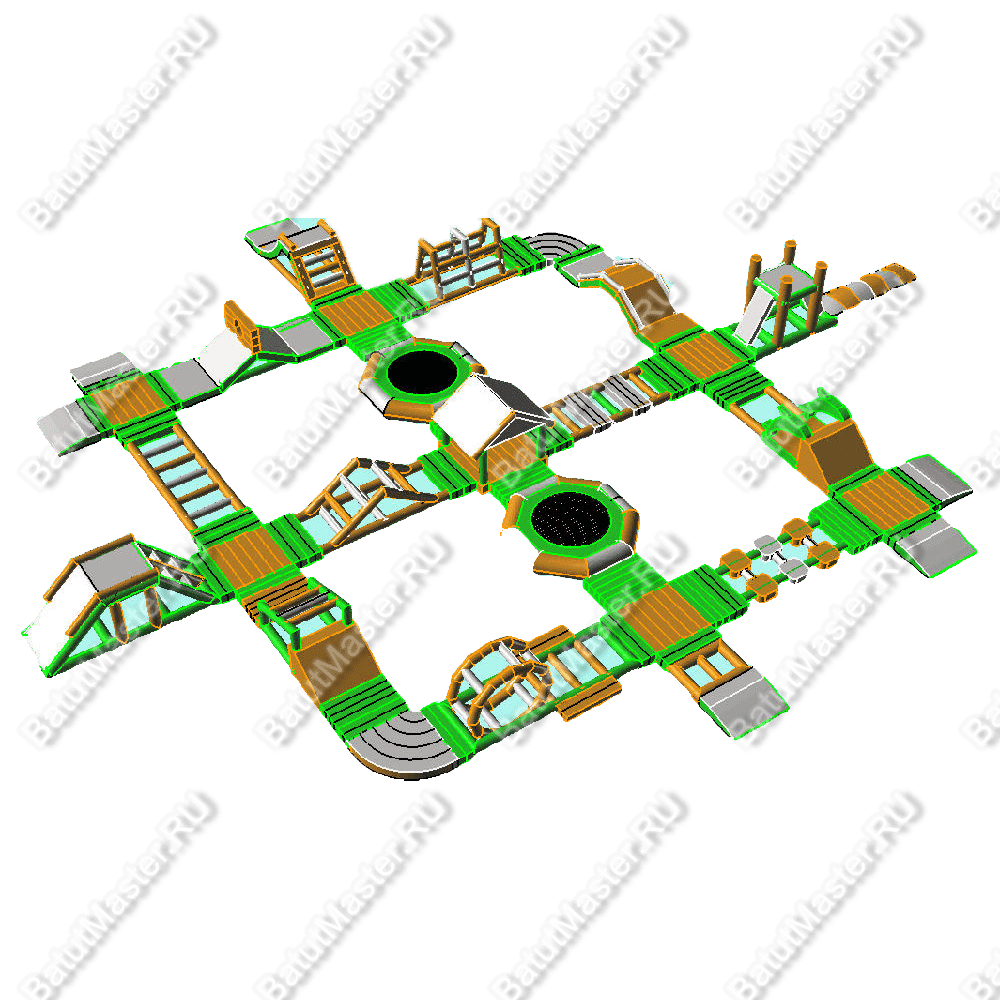 Это уникальное сооружение водных аттракционов, состоящее из нескольких модулей. Надувные модули собираются в любой последовательности, создавая персональный водный комплекс.