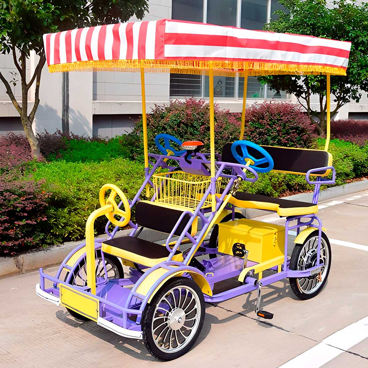 Этот веломобиль создан для тех, кто ценит комфорт, безопасность и оригинальный отдых. Он идеален для парков развлечений, пляжных зон, туристических маршрутов и городских мероприятий. Это не только отличный способ передвижения, но и выгодная инвестиция для бизнеса, ведь прокат велорикш становится все популярнее среди семей, пар и туристов. Станьте частью тренда – предложите своим клиентам уникальный вид досуга!