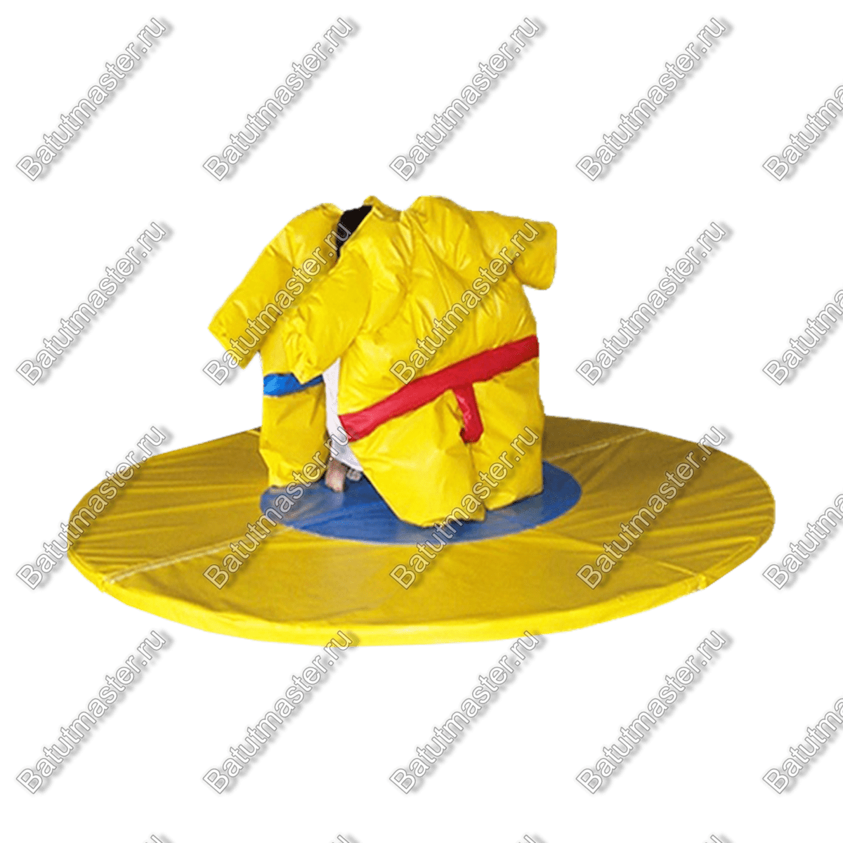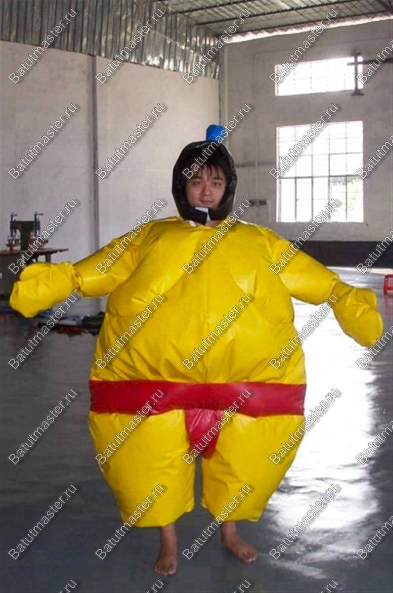 Костюм Сумо это достаточно тяжелый, объемный реквизит который выполнен в виде объемного комбинезона из поливинилхлорида. Участники соревнований надевают костюм и пытаются вытолкнуть друг друга из круга уложенного на пол площадки. Победитель – тот кто остался на ногах в кругу, проигрывает заступивший за очерченную площадку.