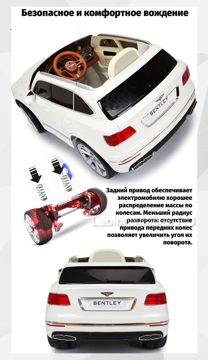 Детский электромобиль Bentley JJ2158 – это маленькая копия настоящего британского бренда. Эргономичный, стильный и красивый электромобиль доставит не только радость от катания, но и принесет море восторга от своего внешнего вида. Тут в каждой детали веет английским стилем. Детский электромобиль Bentley JJ2158 надежный, а самое главное – комфортный. Садясь за руль, абсолютно каждый юный гонщик справится с управлением, так как оно здесь простое и незамысловатое. Удобный переключатель скоростей, поворотов, кнопка сигнала.