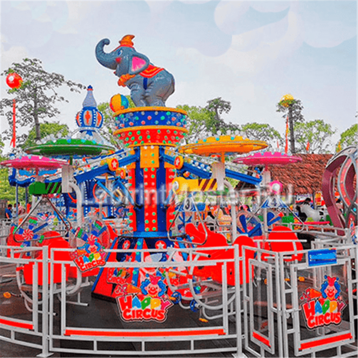 Уникальная тематика цирка, представленного в дизайне карусели, вызывает восхищение и интерес у детей. Весёлые слоны, цветные детали и динамическое освещение превращают катание в настоящее приключение. Встроенные системы звукового сопровождения усиливают впечатления, создавая полное погружение в атмосферу праздника.