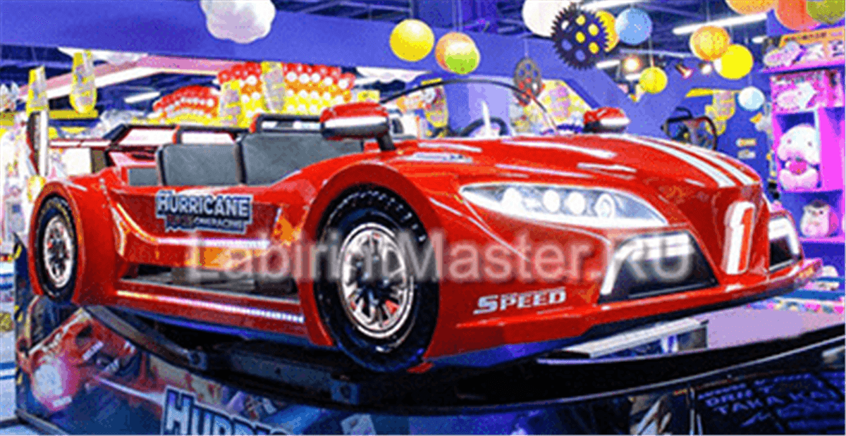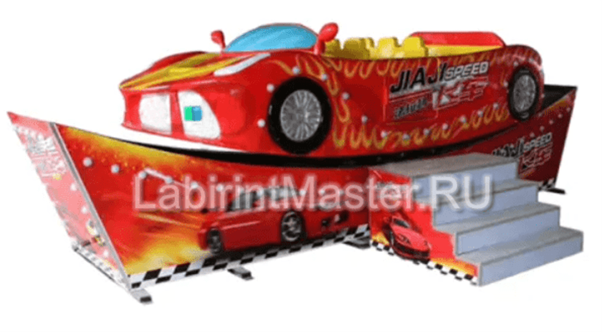 Дизайн аттракциона тщательно продуман: корпус гоночной машины расположен на платформе с декоративными элементами, стилизованными под трассу и гоночную тематику. Панели платформы украшены яркими изображениями автомобилей, а боковые части дополнены декоративными узорами. Входная зона оборудована удобной лестницей с широкими ступенями, обеспечивающей комфортный доступ к сиденьям.