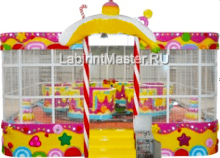 Карусель "Тележка с конфетами" — это аттракцион, который невозможно не заметить. Центральное место занимает круглая платформа, украшенная декоративными элементами в виде огромных леденцов и карамельных палочек. Яркие розовые, жёлтые и белые цвета гармонично сочетаются, добавляя сладкого настроения. Верхняя часть украшена стилизованными леденцами и звёздочками, что делает аттракцион ещё более привлекательным. Скамьи и кресла для пассажиров также оформлены в ярких цветах и дополнены элементами сладостей, что делает пребывание на карусели особенно запоминающимся.Посадочные места представлены в виде небольших декоративных тележек, каждая из которых стилизована под сладости и украшена яркими деталями. Дети могут комфортно разместиться в скамейках или креслах, а движение тележек по кругу создаёт мягкое, плавное ощущение катания.