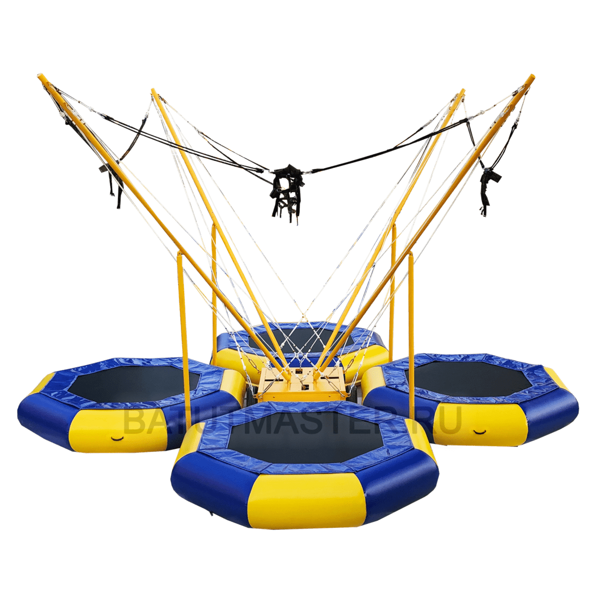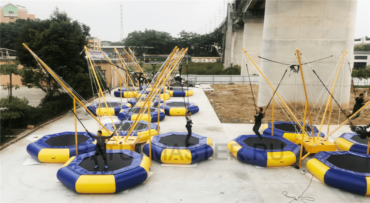 Батут-банджи «Полёт 2» — усовершенствованная версия популярного аттракциона, созданная для активного отдыха и коммерческого использования. Конструкция размером 6×6×6 м рассчитана на четырёх участников одновременно, что делает её идеальной для парков, баз отдыха, торговых центров и фестивалей. Модель сочетает современный дизайн, высокую надёжность и простоту эксплуатации. Яркое сине-жёлтое оформление притягивает внимание и создаёт позитивное настроение, а продуманная механика обеспечивает лёгкость и безопасность прыжков.