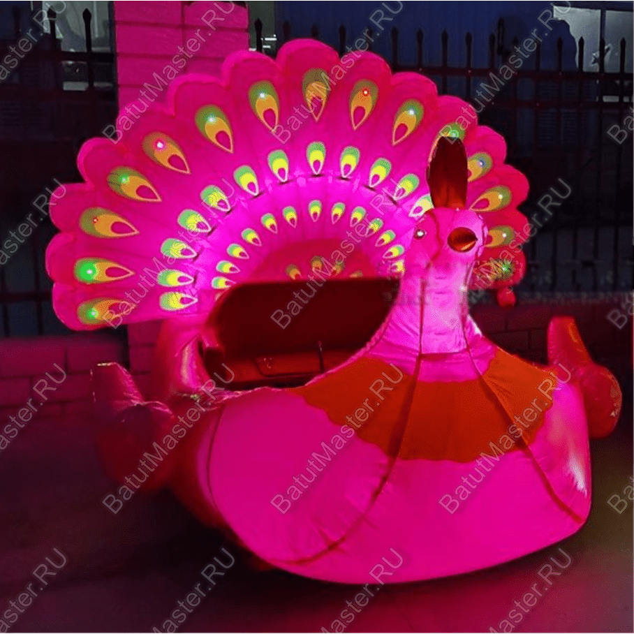 Подсветка равномерно распределена по перьям и телу павлина, создавая чарующий эффект движения и сияния, особенно в вечернее время.