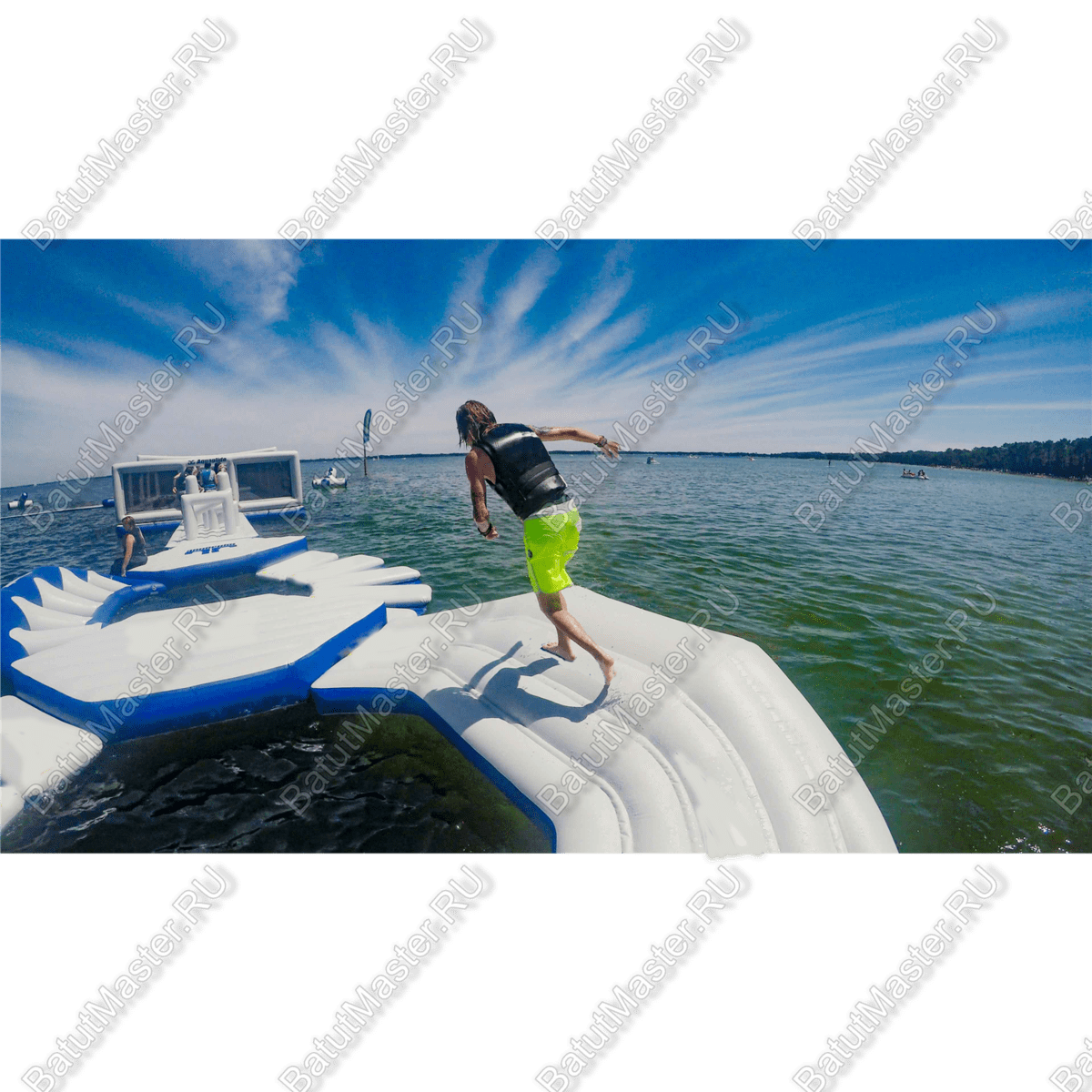 Модуль выполнен из усиленного армированного ПВХ толщиной 0,9 мм и плотностью 1100 г/м². Такой материал известен своей устойчивостью к механическим нагрузкам и воздействию воды. Герметичные сварные швы, выполненные внахлёст, увеличивают срок службы и делают конструкцию устойчивой даже при интенсивной эксплуатации. Благодаря размерам 3x2x0,5 м «Бендбак» не занимает слишком много пространства, но в то же время способен обслуживать сразу несколько участников игры.