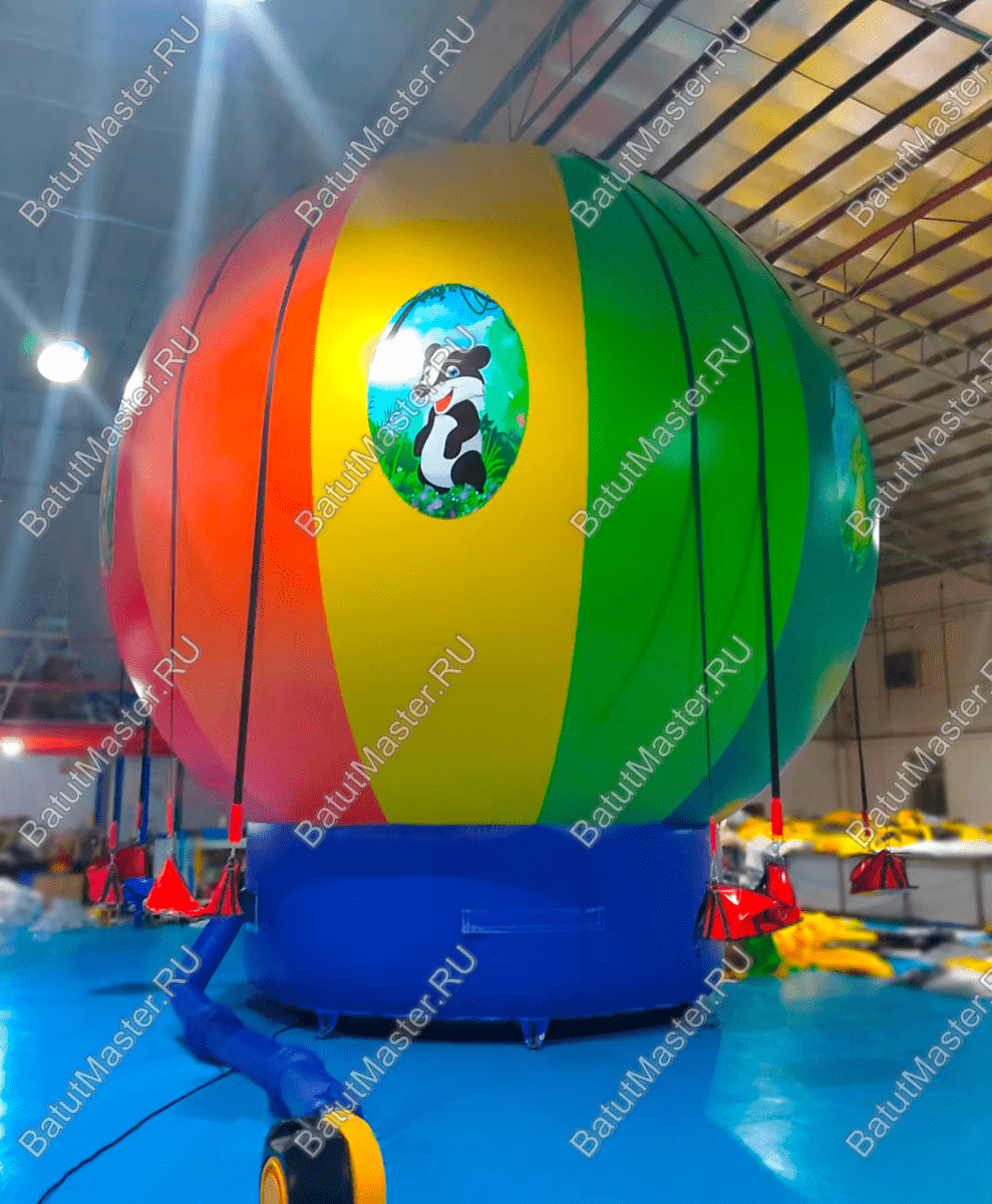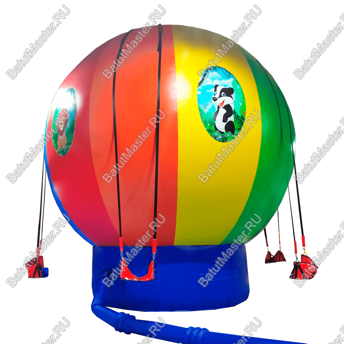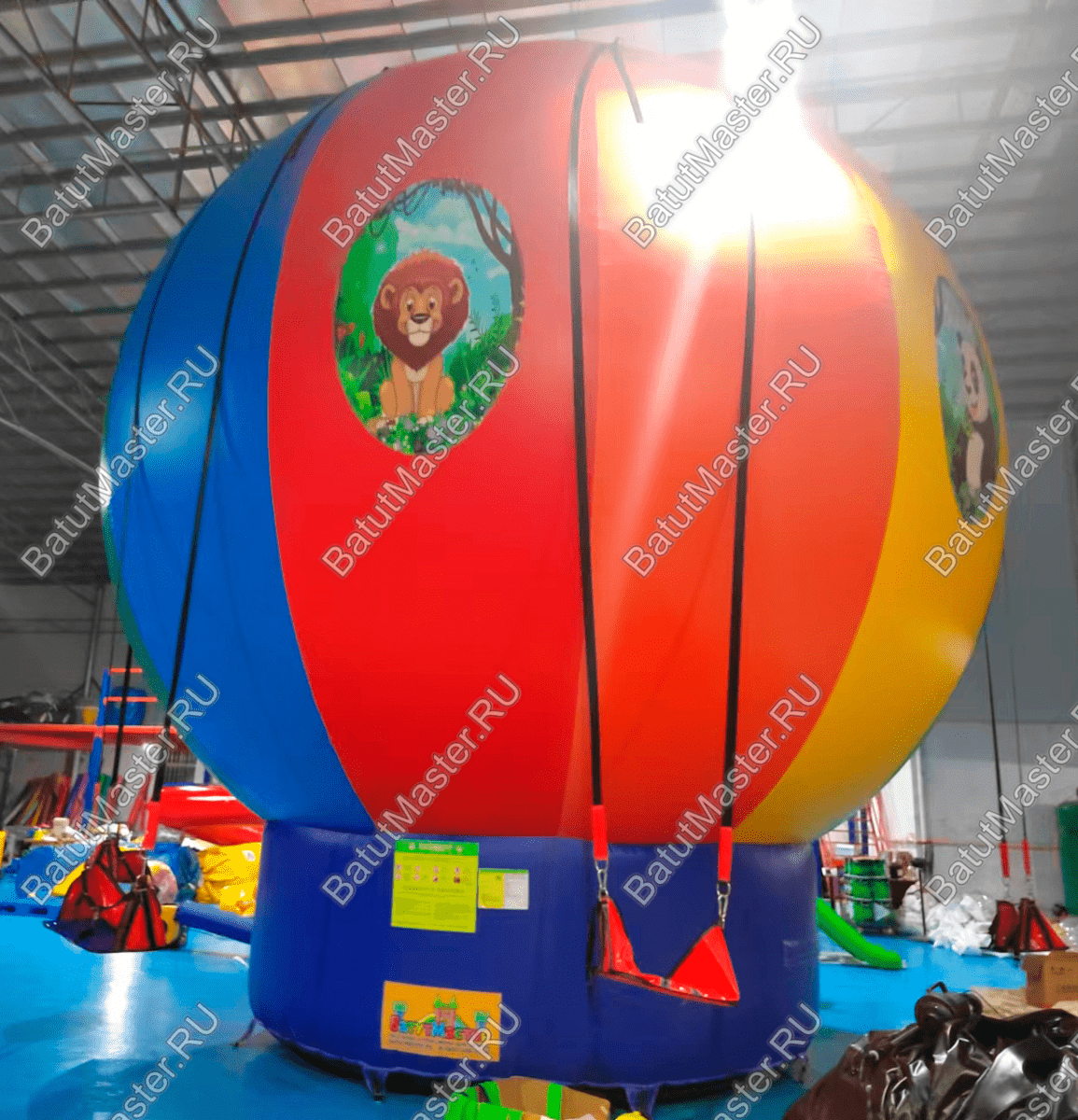 Принцип работы простой: купол воздушного шара надувается насосом и держит форму за счёт постоянного давления воздуха. Внутри купола к прочным креплениям подвешены сиденья на надёжных ремнях. Гости садятся, фиксируются, и раскачиваются вперёд-назад, как на классических качелях, отталкиваясь от стенки купола. Всё безопасно: сиденья прочно держатся, а оболочка устойчива и мягко амортизирует.