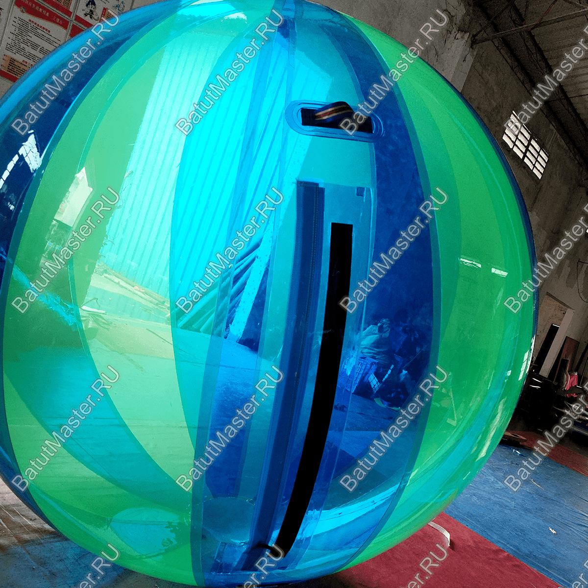 Аттракцион "Сине-зеленый" — это водный шар нового поколения, выполненный из высококачественного термополиуретана (ТПУ), отличающегося долговечностью, эластичностью и безопасностью при контакте с водой. Прозрачный материал придает шару эффект «пузыря» или «капли», благодаря чему аттракцион привлекает внимание с первого взгляда и становится центром притяжения детей и подростков на любой водной локации — в аквапарках, базах отдыха, парках и на пляжах.