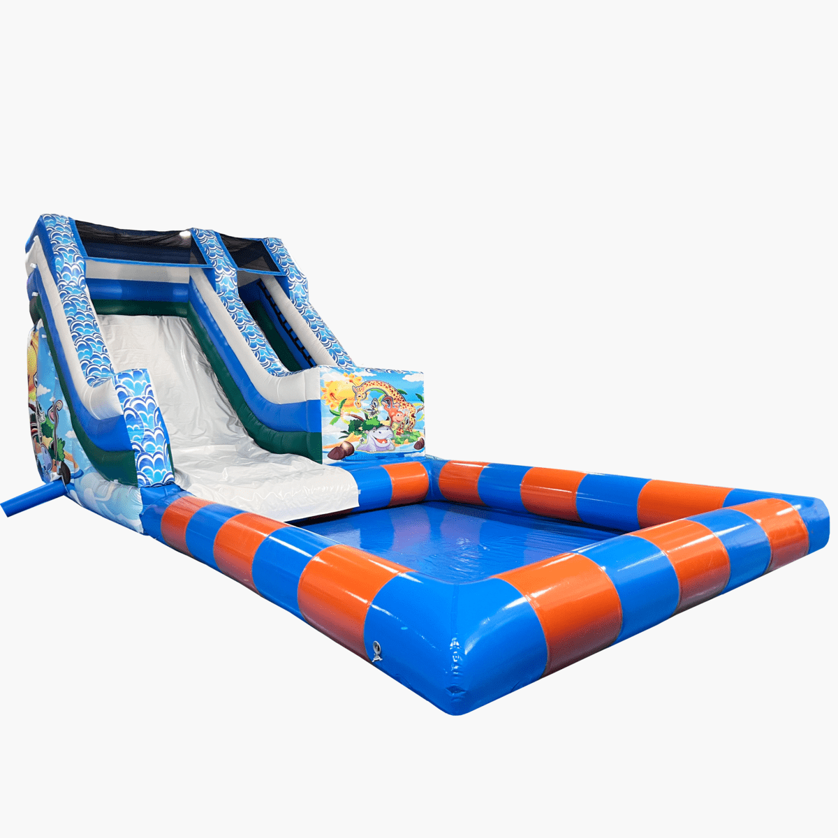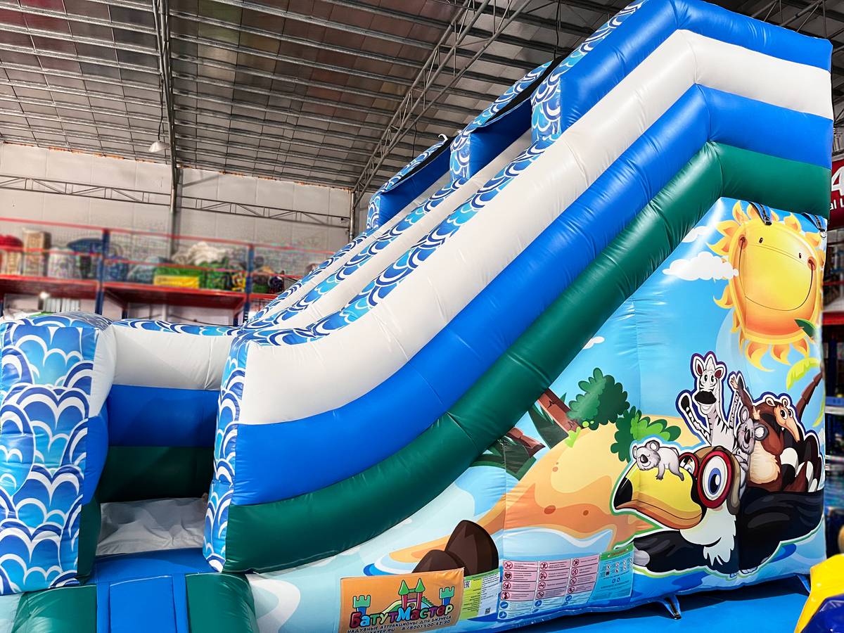 Водная горка с бассейном «Зверопой 2» — это современный надувной аттракцион из серии Наземные аквапарки и водные горки, сочетающий яркий дизайн, высокий уровень безопасности и продуманную экономику эксплуатации. Его габариты 10×4×4,5 м позволяют установить аттракцион практически в любом месте — от открытых пляжей и аквапарков до крытых развлекательных комплексов и гостиничных зон отдыха.