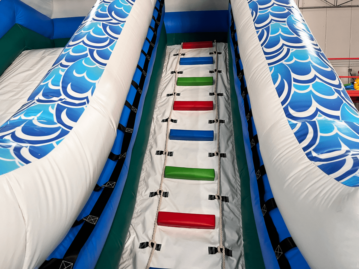 Поверхность ската и лестницы оснащены сменными элементами на липучках (велкро) склизами, что позволяет быстро производить замену без остановки работы.