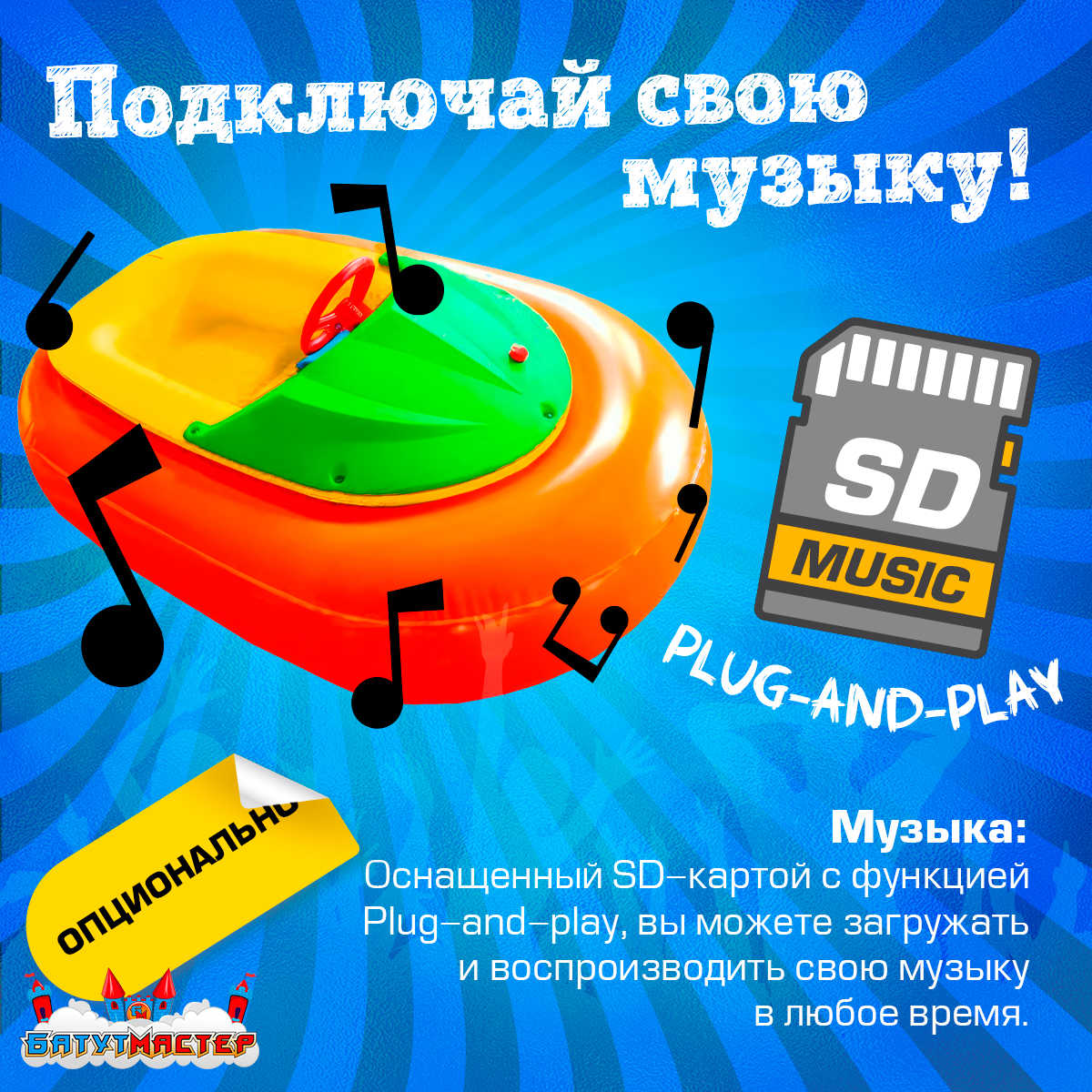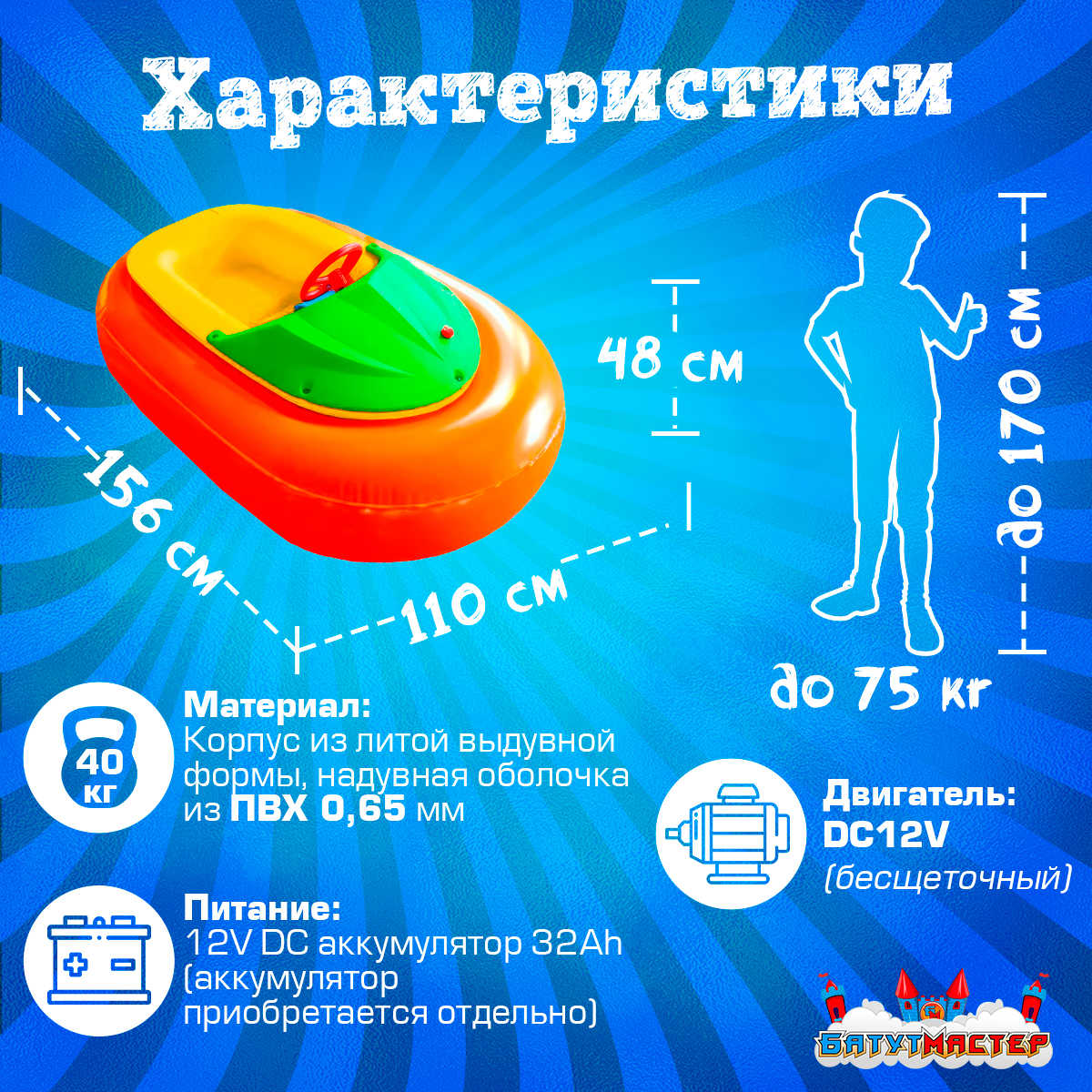 Средняя часть бамперной лодки изготовлена из легкого пластика, он не пропускает воду и позволяет разместить в корпусе детали управления. Широкие надувные борта из ПВХ придают изделию плавучести и не позволяют переворачиваться даже при резких поворотах и столкновениях с препятствиями.