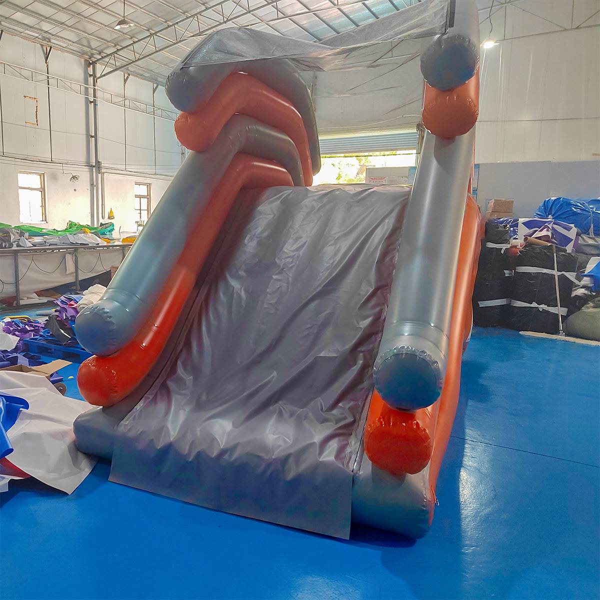 В основе — герметичная камера на надувной опоре: воздух закачивается один раз, после чего конструкция держит форму без постоянного поддува. Это снижает шумовой фон и эксплуатационные затраты, особенно важно для передвижных аквапарков, фестивалей, корпоративных праздников и выставок. Толстый профессиональный ПВХ (0,55–0,9 мм, плотность 690–1100 г/м²) с многослойной армировкой устойчив к истиранию и солнечному излучению, а термосварные швы формируют монолитную геометрию ската без «ступенек» и «заломов». Рабочий температурный диапазон от 0 до 65 °C позволяет уверенно открывать сезон ранней весной и закрывать поздним летом, а при наличии подходящего чашевого пространства горку можно использовать и в помещении — например, в аквацентрах и фитнес-клубах.