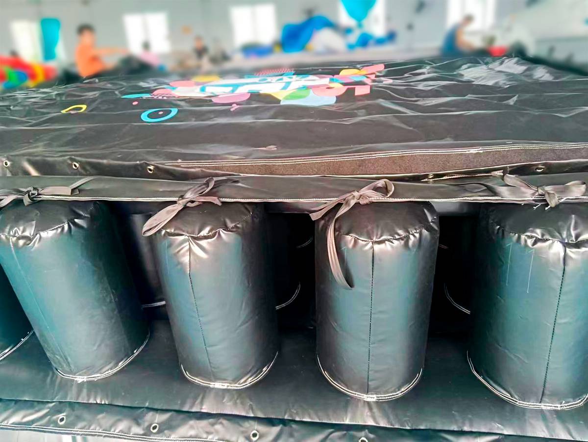 Внутренний слой из вертикальных цилиндрических амортизирующих модулей. Эти отдельные камеры поглощают энергию удара, обеспечивая мягкое, контролируемое приземление без резких колебаний. Даже при падении с большой высоты поверхность остаётся стабильной.
