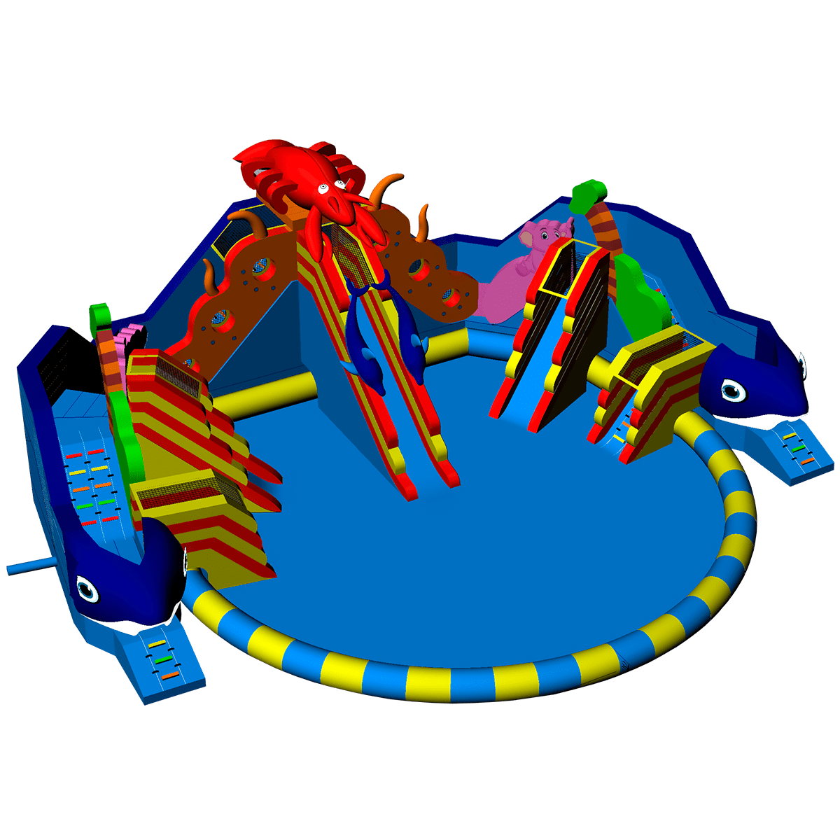 Декорации в виде осьминогов, рыбок и морских животных создают ощущение погружения в океан. Это не просто аттракцион, а целая водная история, где дети могут играть, соревноваться, смеяться и исследовать морскую стихию в безопасной и увлекательной форме.