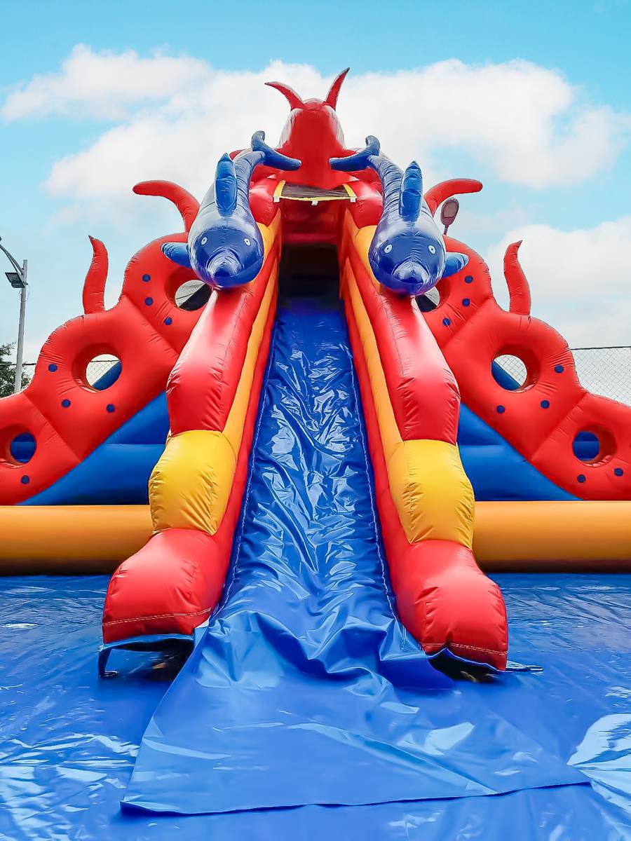 Три спуска с разным углом наклона дают возможность выбрать подходящий уровень активности. После скольжения участники попадают в зону финиша с водой, которая мягко снижает скорость и обеспечивает безопасное завершение катания.