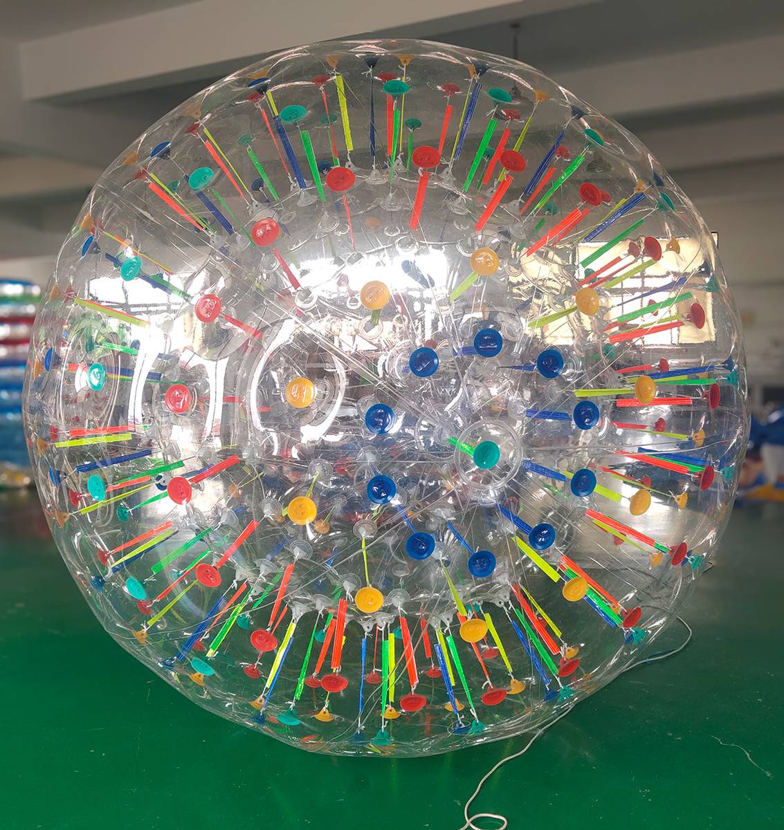 - Прозрачная поверхность и стильные белые стропы делают зорб эстетичным и современным.