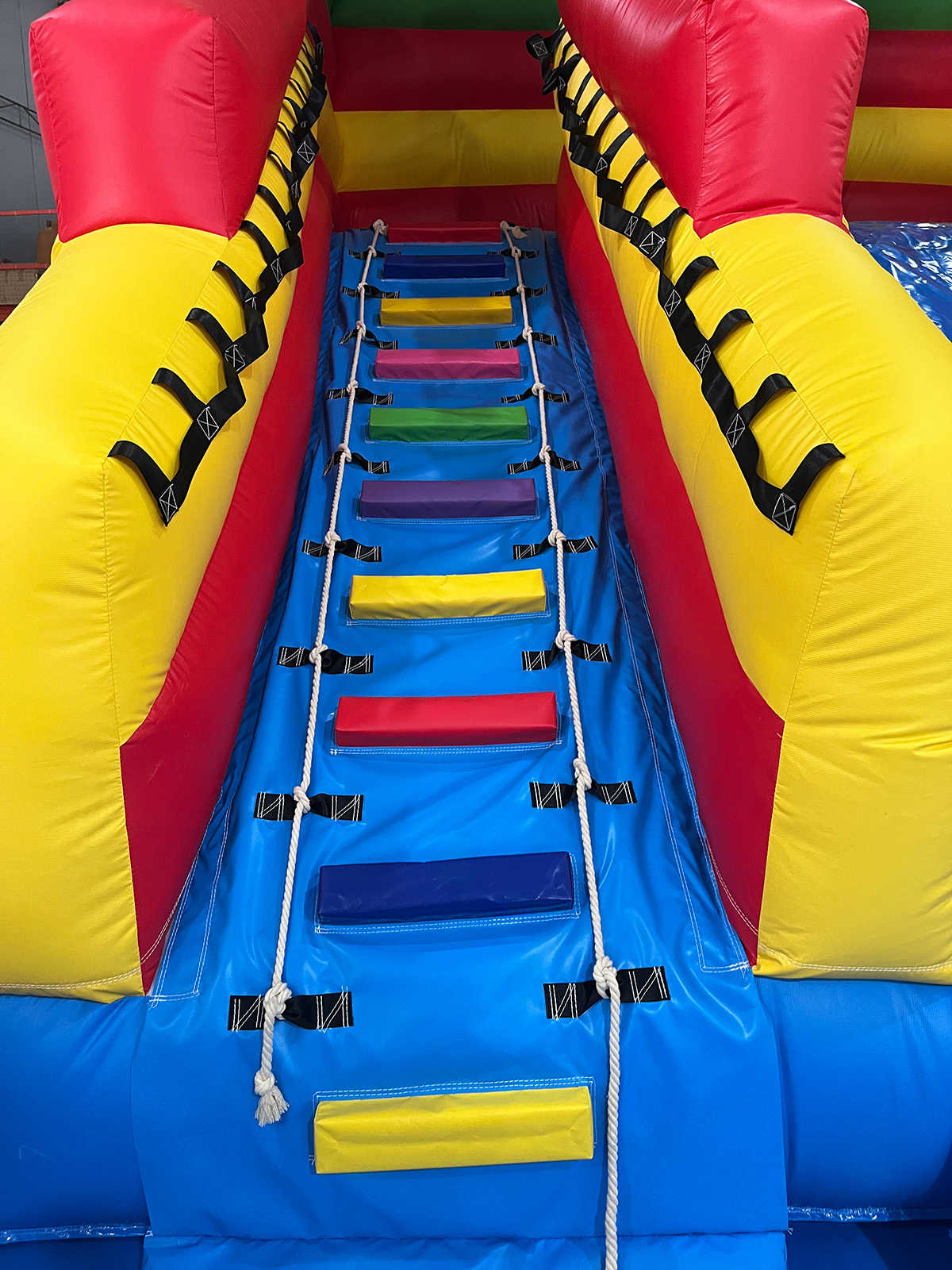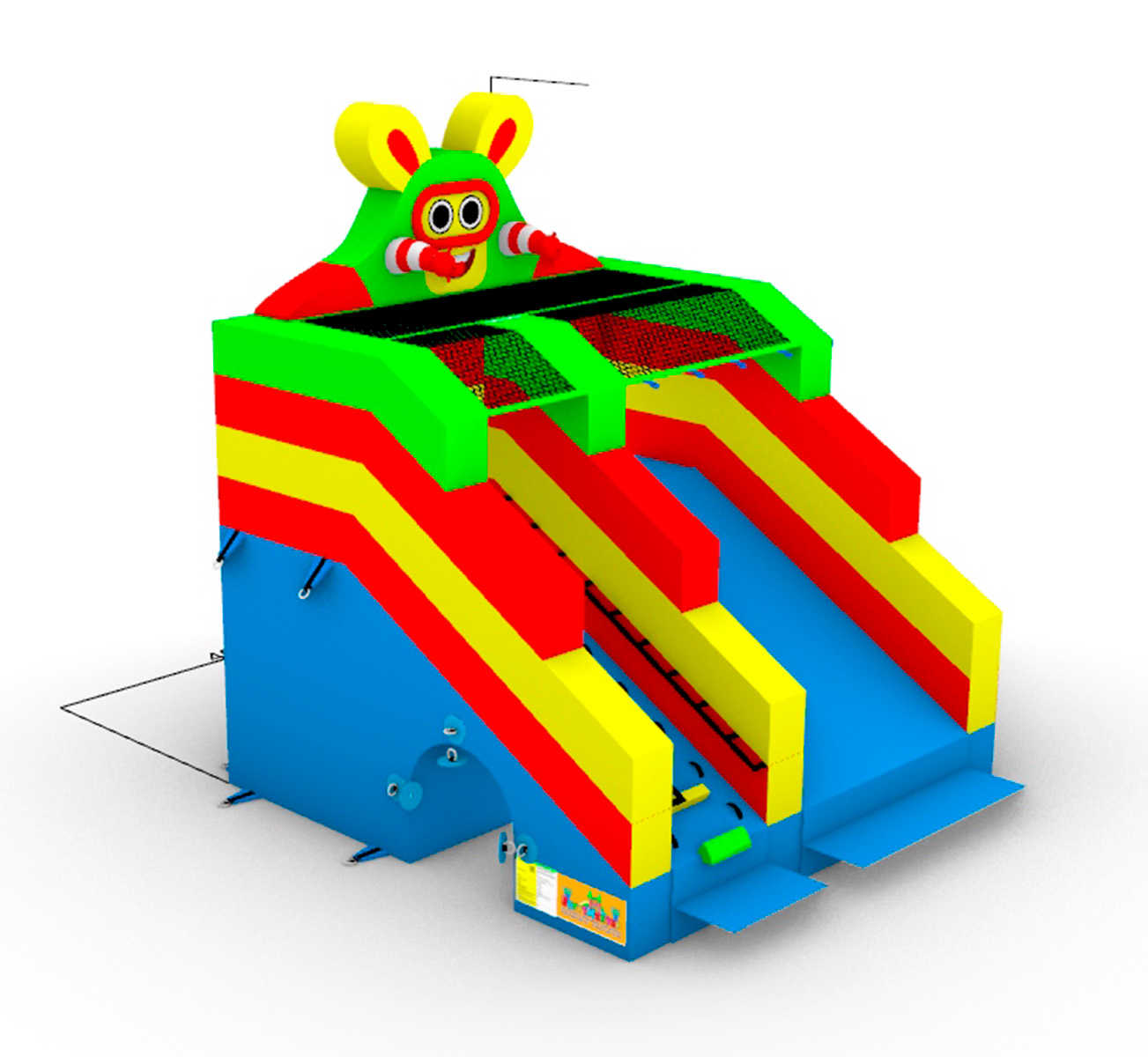Горка поддерживается за счёт постоянного поддува и оснащена всеми необходимыми элементами для надёжной фиксации к земле, в том числе швартовочными узлами и анкерами.