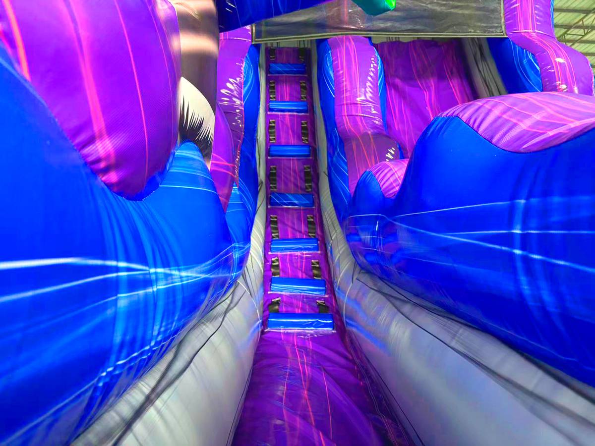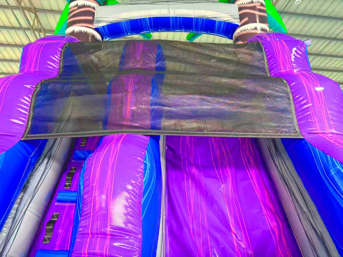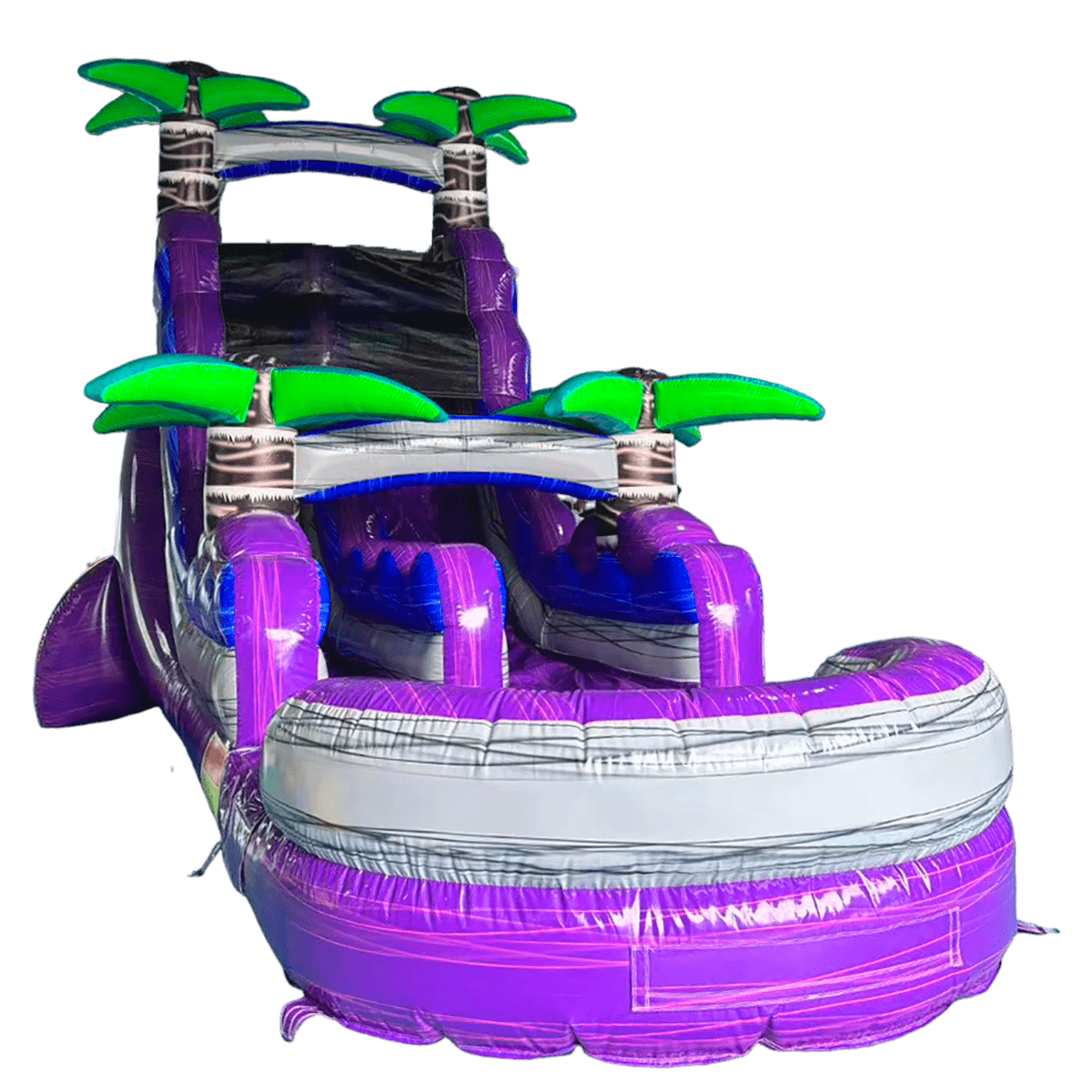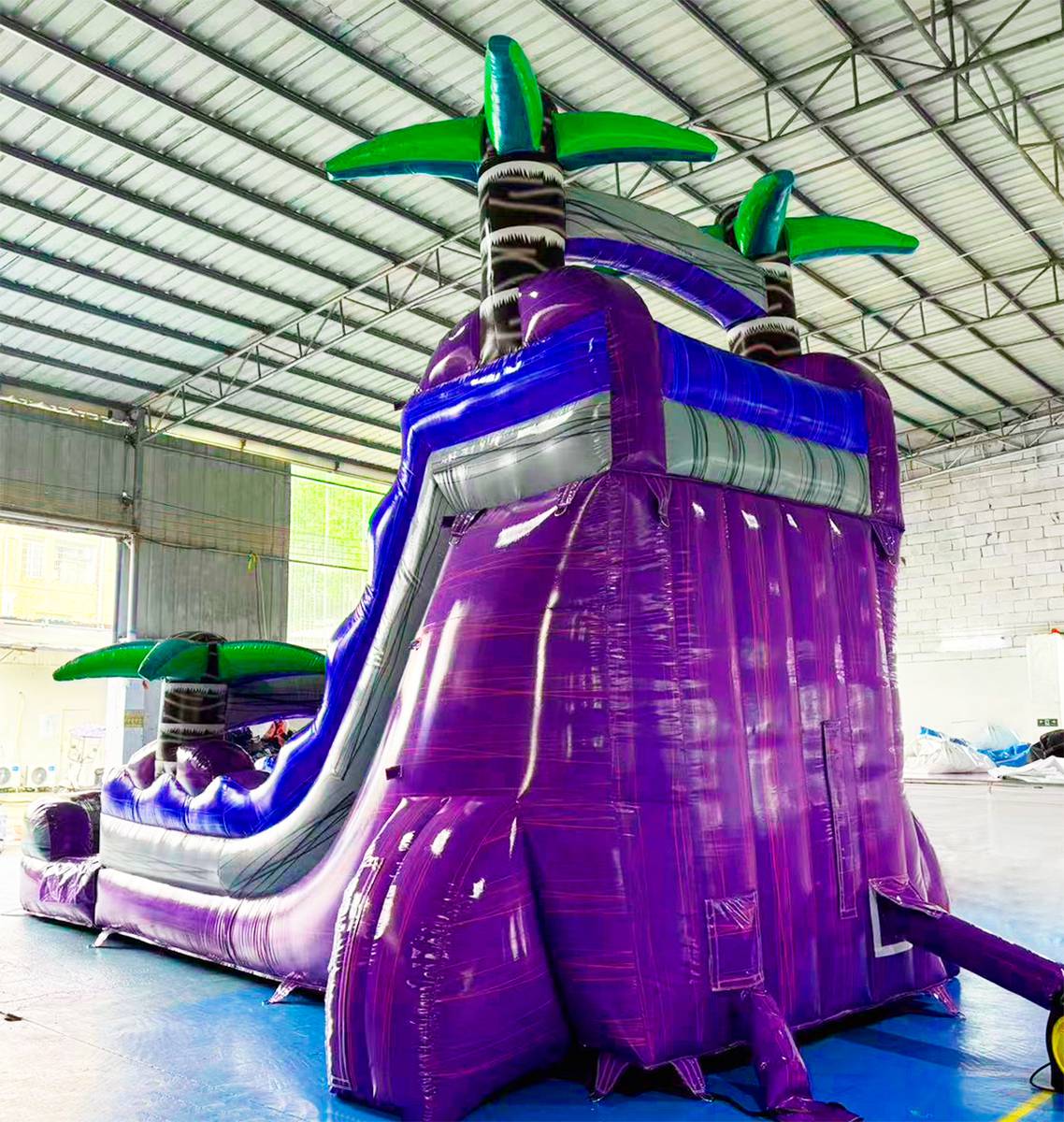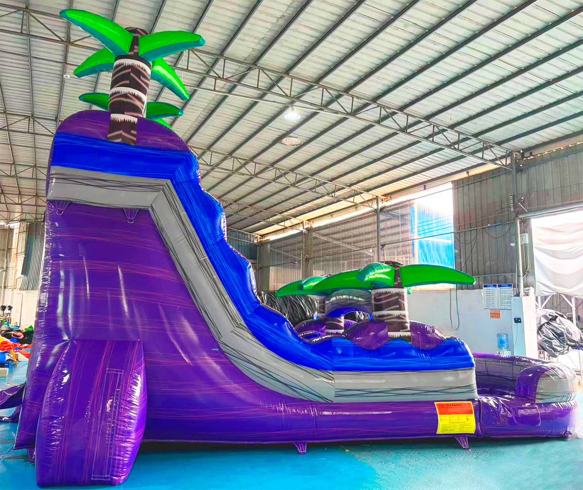 Водная горка «Фиолетовый бриз» 8x4x5 — это аттракцион, который превращает любую площадку в место, куда хочется возвращаться. Сочетание ярких оттенков фиолетового с декоративными пальмами создаёт атмосферу морского побережья.