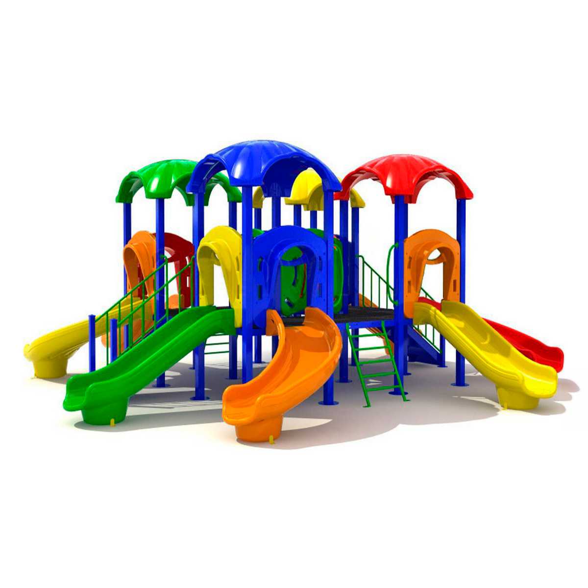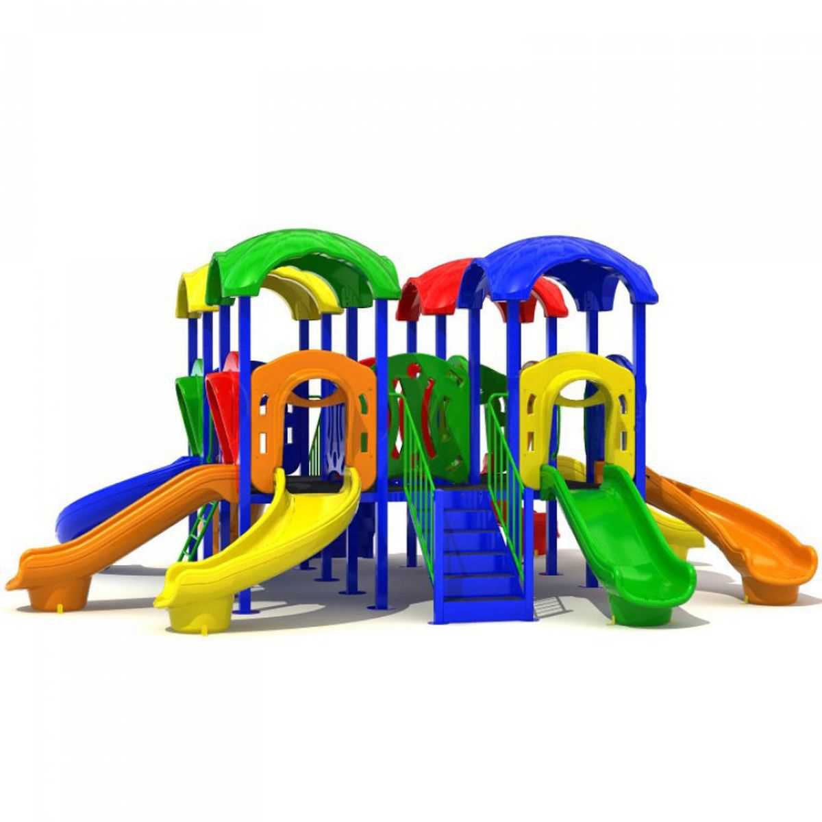 Каждый элемент комплекса продуман с точки зрения безопасности: отсутствуют острые углы и выступающие детали, а поверхности покрыты двойной порошковой окраской, обеспечивающей надежную защиту от механических повреждений и ультрафиолетового воздействия. Металлические трубы диаметром 112 мм придают конструкции устойчивость и визуальную лёгкость, а разноцветные элементы — жёлтые, синие, красные, зелёные и оранжевые — создают атмосферу праздника и радости.