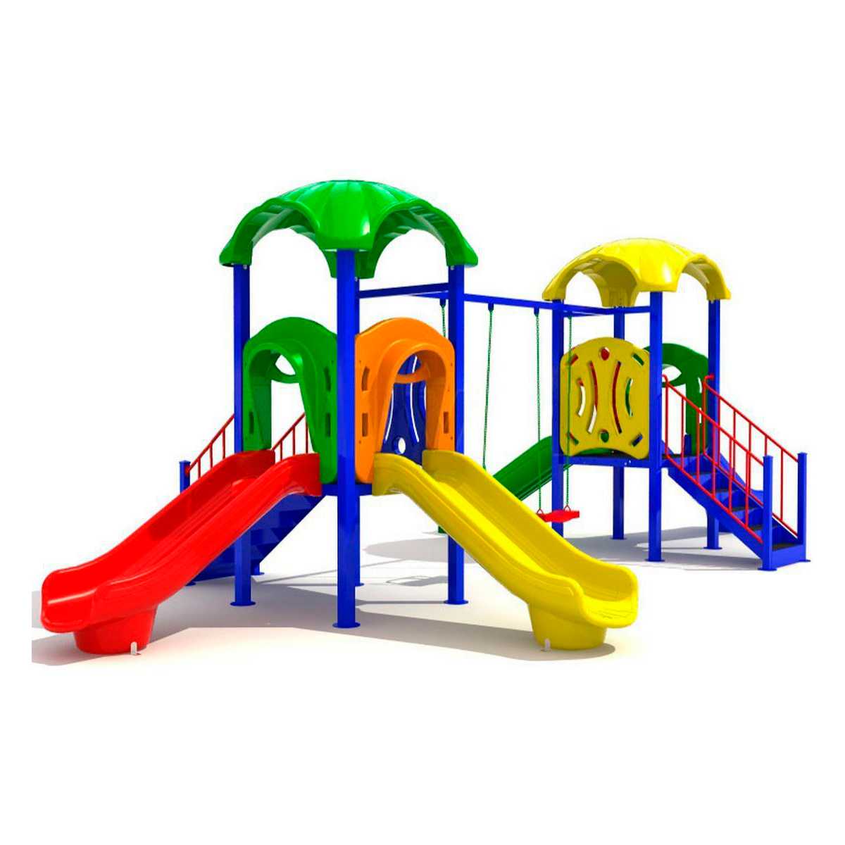 Основой комплекса служит прочная металлическая конструкция с двойной порошковой окраской, обеспечивающей устойчивость к коррозии, механическим повреждениям и влиянию погодных условий. Все элементы выполнены из экологически безопасных материалов — металла и ударопрочного пластика на основе пищевого полиэтилена низкого давления. Такое сочетание делает площадку долговечной и безопасной при эксплуатации в любых климатических условиях: от морозов до +65 °C.