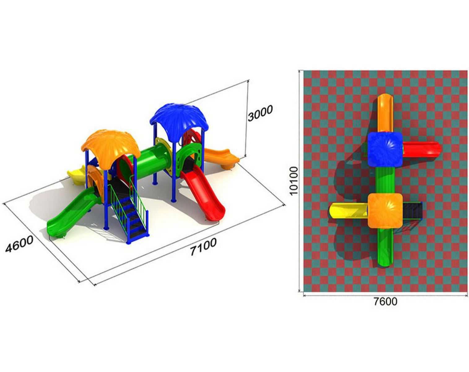 Размеры игровой зоны — 7,1 метра в длину, 4,6 метра в ширину и 3 метра в высоту — позволяют комфортно разместить оборудование на дворовых территориях многоквартирных домов, в детских садах, школах, парках, торговых и развлекательных центрах, а также на придомовых участках частных домов. Площадь комплекса — более 32 квадратных метров, что делает его просторным и удобным даже при одновременном нахождении нескольких групп детей.