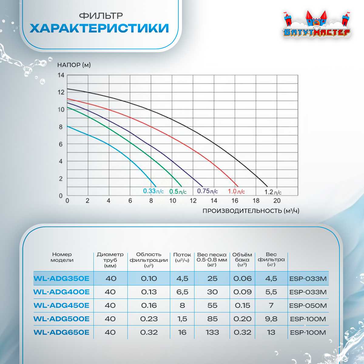 Песочный фильтр WL-ADG350E с циркуляционным насосом KP256 представляет собой оптимальное бюджетное решение для домашних бассейнов объемом до 36 м³. Эта система сочетает проверенную технологию песочной фильтрации с надежным и экономичным насосом серии KP, обеспечивая отличное соотношение цена-качество.