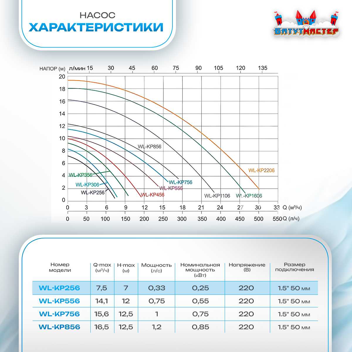 • Производительность: 6,5 м³/ч при 10,5 м напора