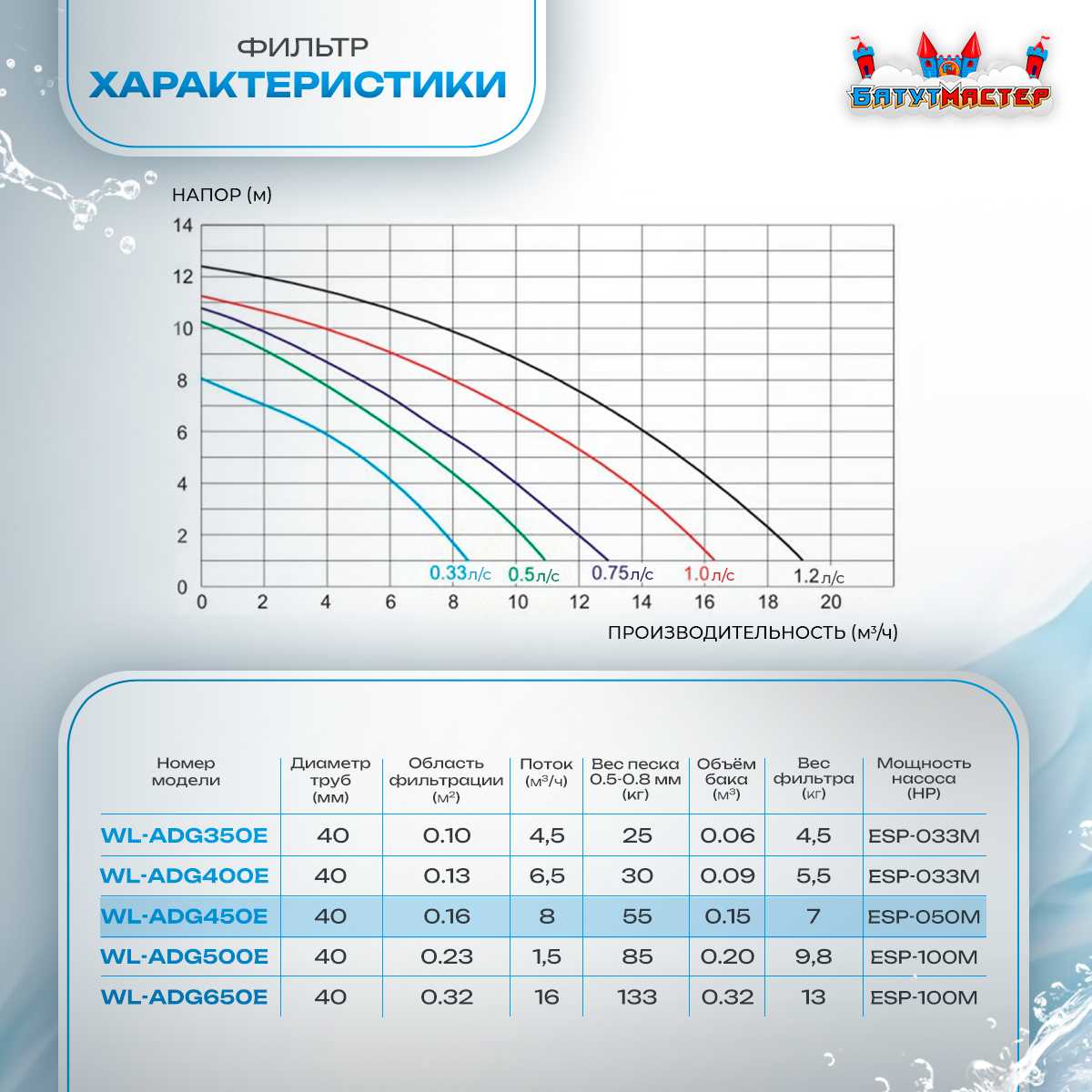 • Песочный фильтр WL-ADG450E с 6-позиционным клапаном