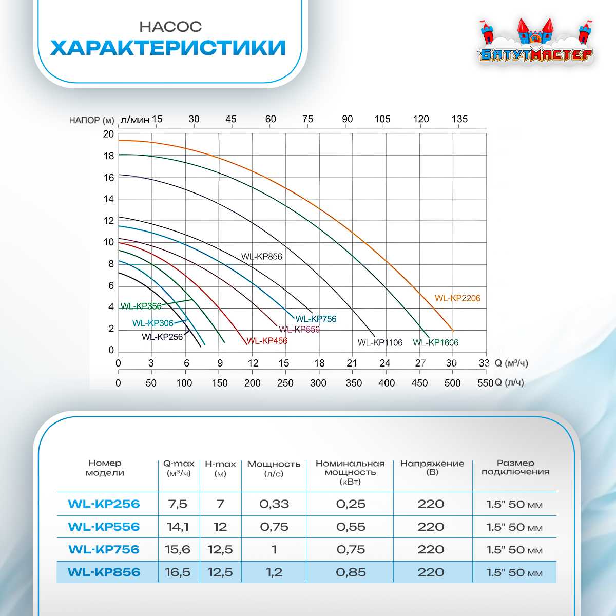 • Максимальный напор: 38 м
