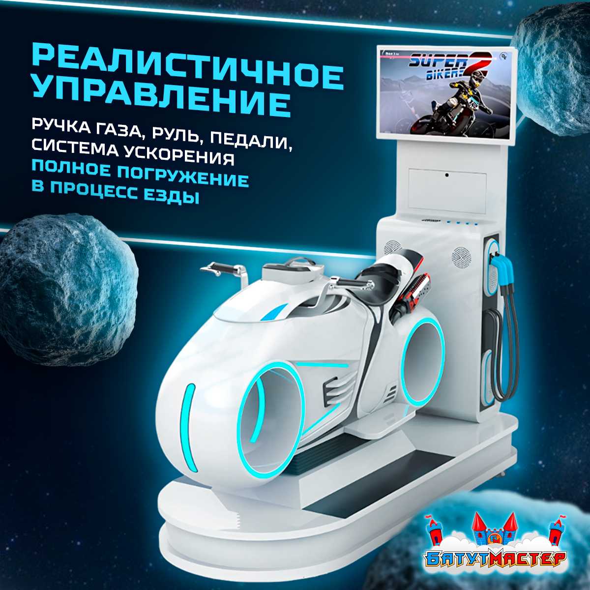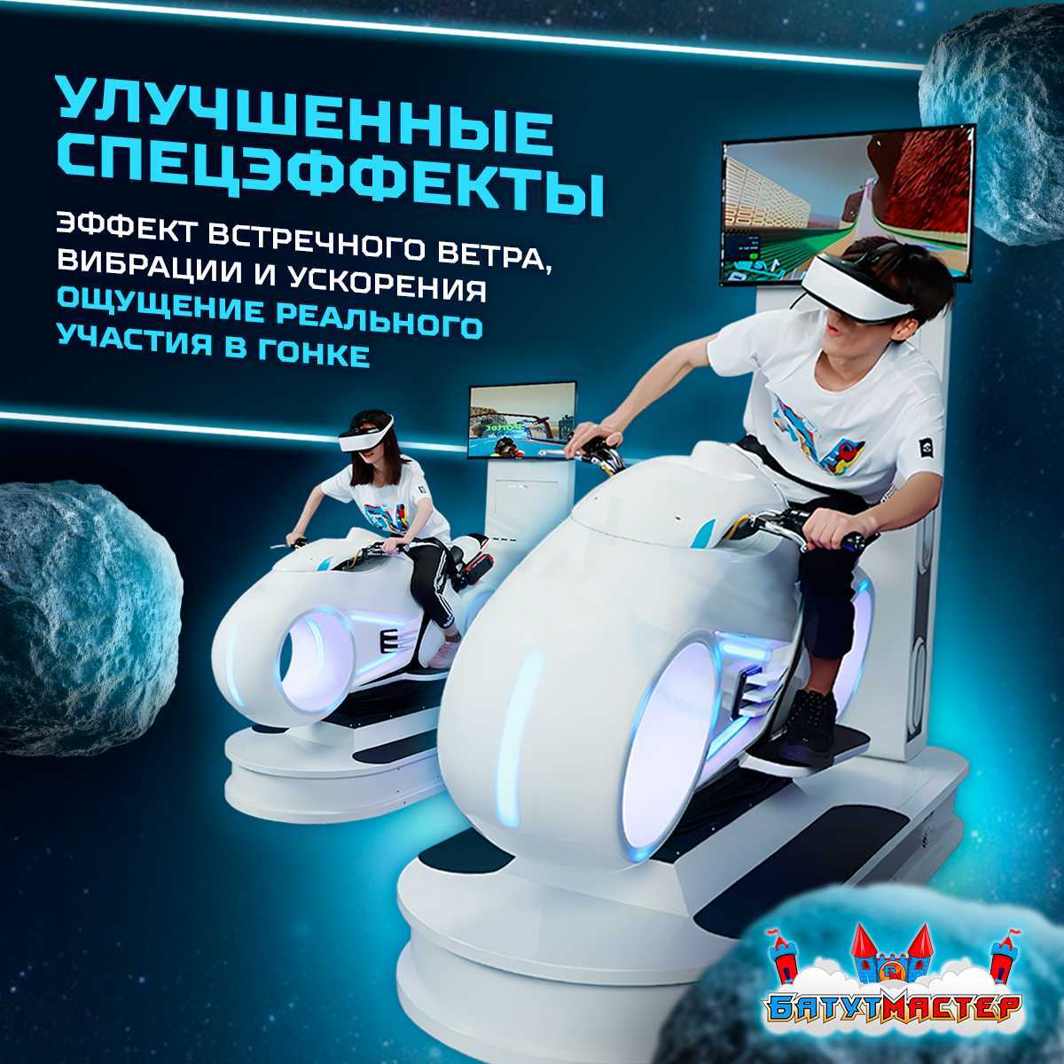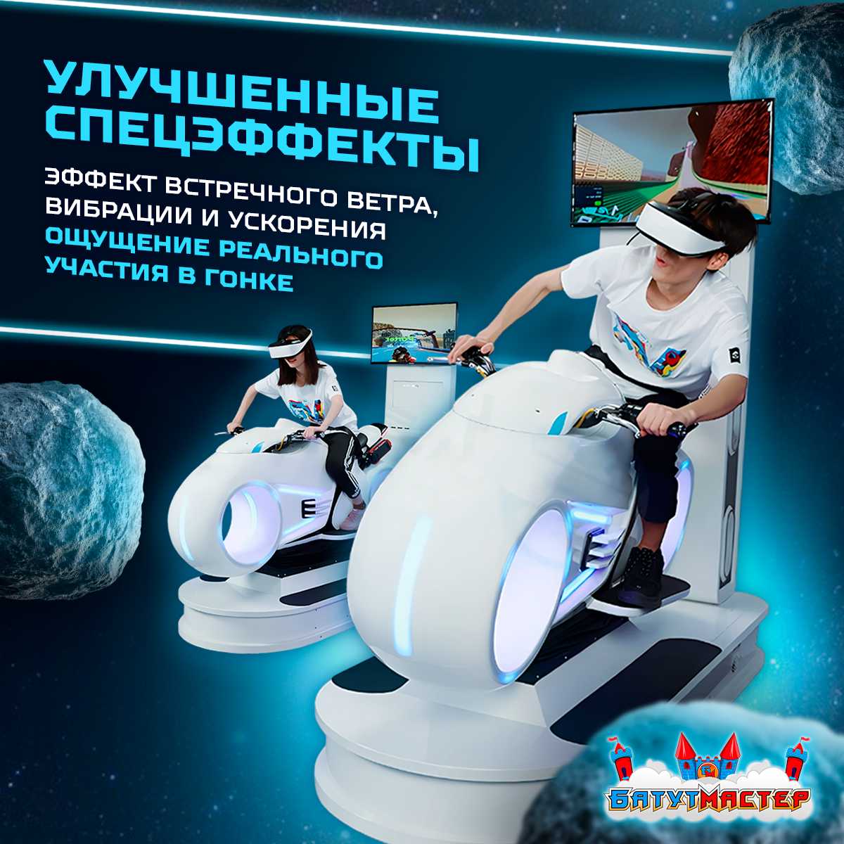 Эффекты 9D создают ощущение реального присутствия на трассе: игрок ощущает ветер, вибрации, ускорение и даже повороты мотоцикла.