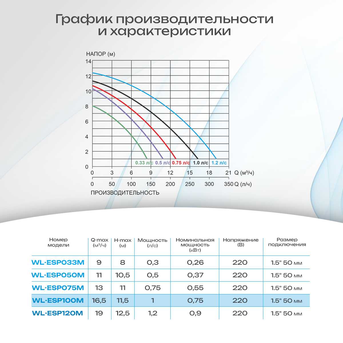 Производительность: 16,5 м³/ч (максимальная подача)