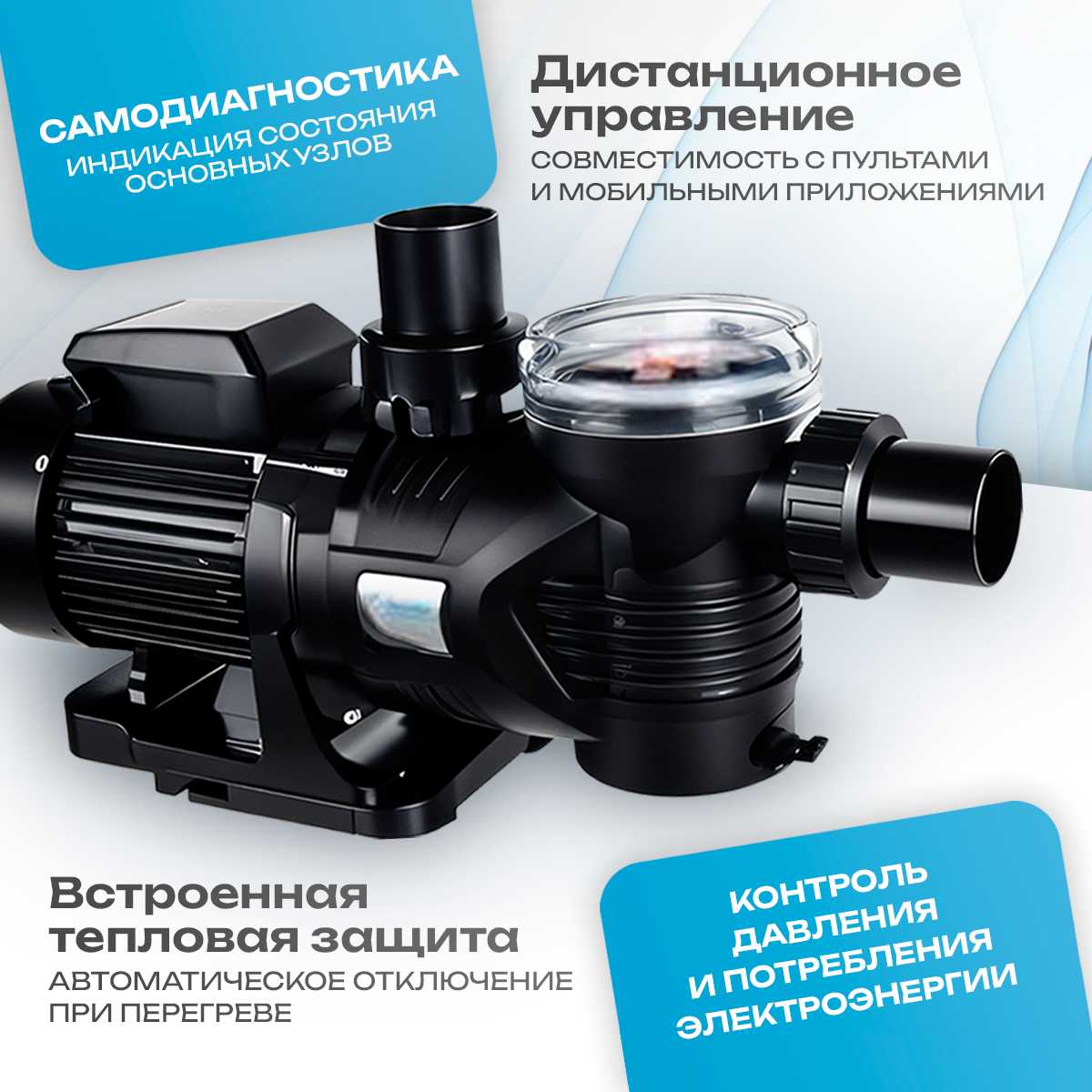 • Рекомендуемый объем бассейна: до 152 м³