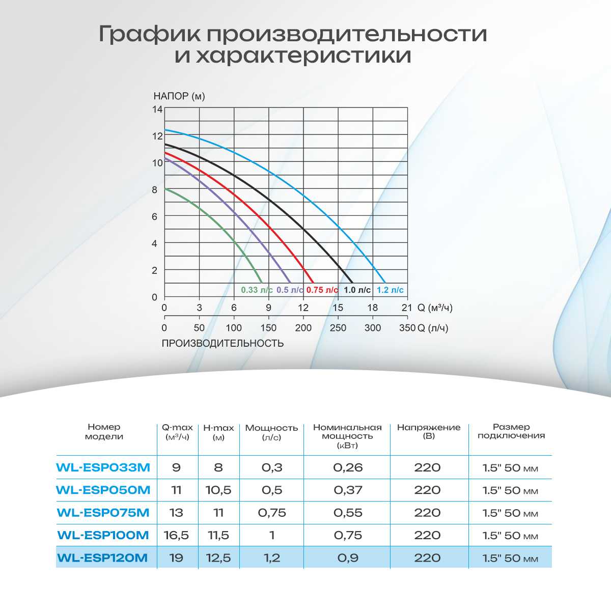 • Максимальный напор: 12,5 метров