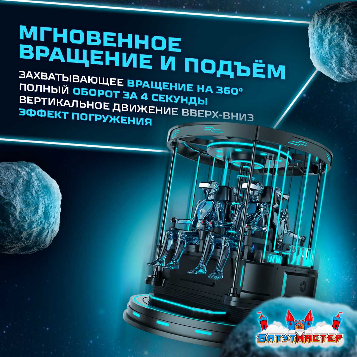«Лифт в космос» — это не просто VR-аттракцион, это интеллектуальный симулятор нового поколения, который соединяет кинематографичность виртуального мира, физическое движение и эмоциональное вовлечение игроков. Его концепция вдохновлена полётами в космос и научно-фантастическими сюжетами, и он предлагает погружение на уровне, сопоставимом с кинотеатром 5D, но при этом занимает в 5 раз меньше пространства и не требует отдельного зала.