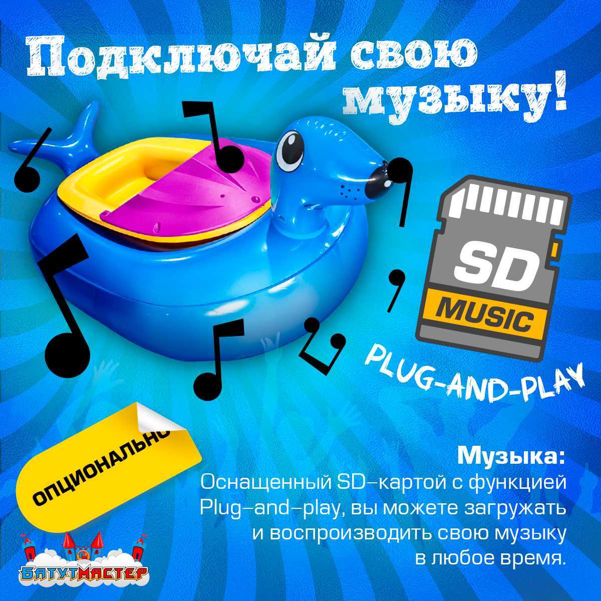 Дополнительно лодка оснащена музыкальным модулем с SD-картой, позволяющим воспроизводить музыку во время катания. Это создаёт праздничную атмосферу и делает аттракцион ещё более привлекательным для детей.