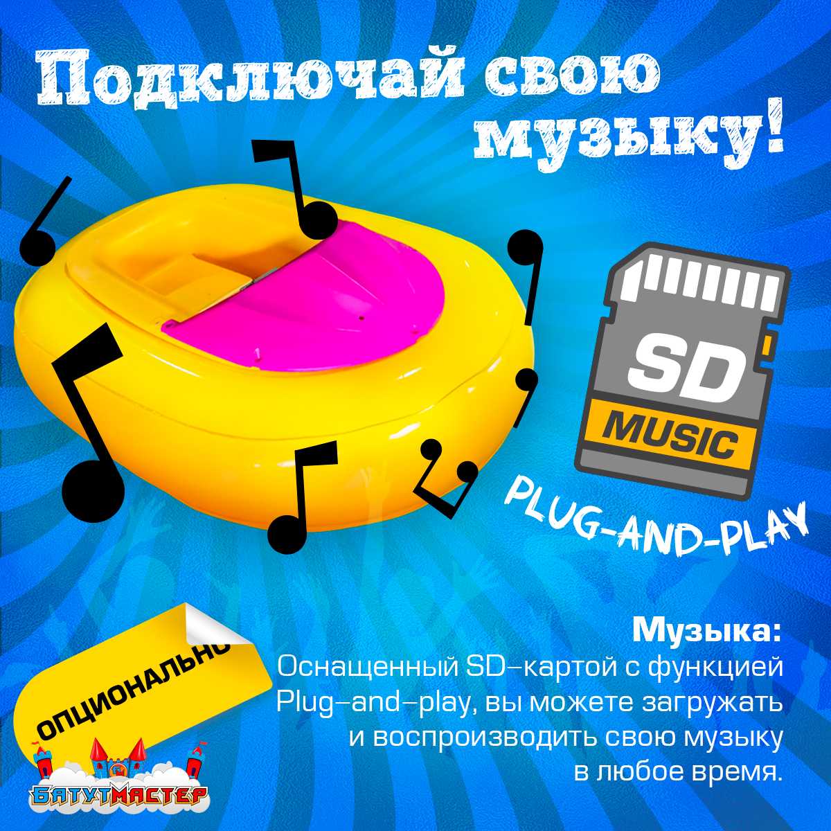 Дополнительно лодка оснащена музыкальным модулем с SD-картой, позволяющим воспроизводить музыку во время катания. Это создаёт праздничную атмосферу и делает аттракцион ещё более привлекательным для детей.