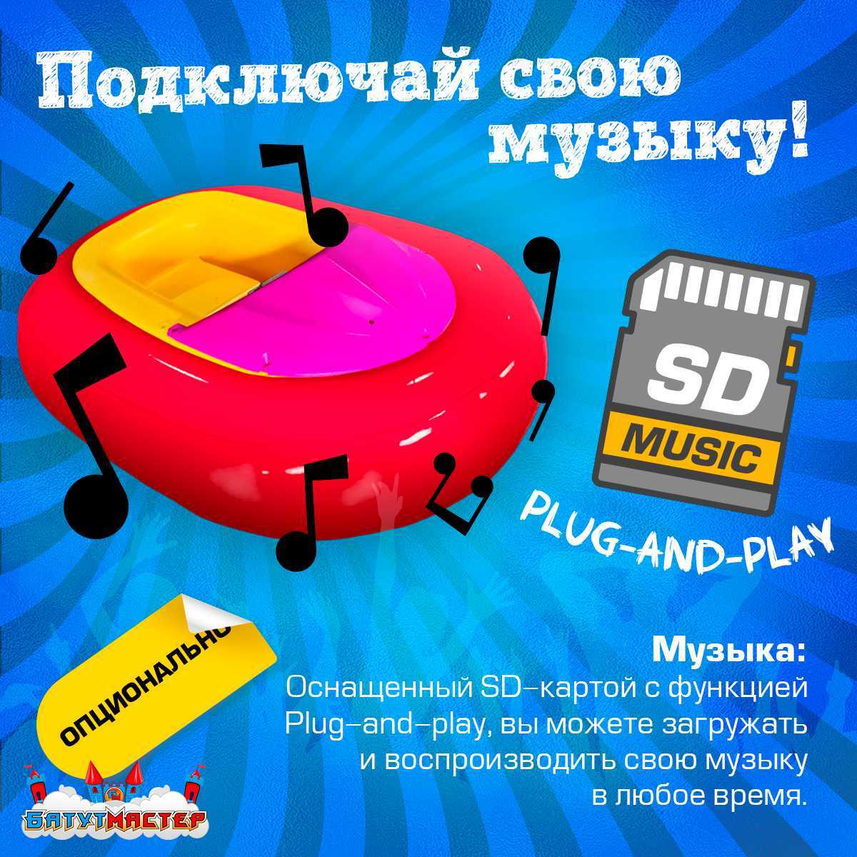 Дополнительно лодка оснащена музыкальным модулем с SD-картой, позволяющим воспроизводить музыку во время катания. Это создаёт праздничную атмосферу и делает аттракцион ещё более привлекательным для детей.