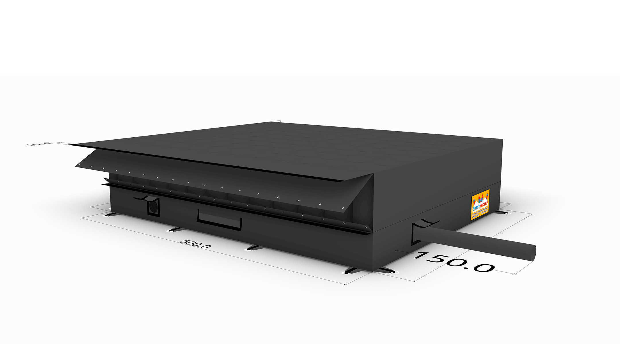 Подушка легко перевозится в сдутом виде в специальной сумке. Для дальних перевозок можно использовать дополнительную защитную обрешетку (деревянный или фанерный ящик), чтобы исключить повреждения. Такая мобильность особенно ценна для организаторов мероприятий, фестивалей и шоу, где оборудование требуется часто перемещать.