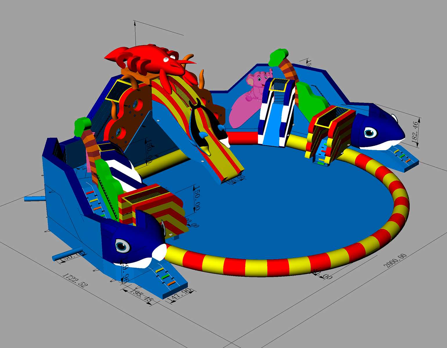 Надувная водная горка «Весёлый крабик» 11,3*7*6,8 м