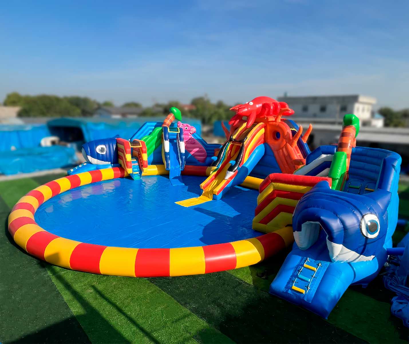 Огромный аквапарк 21x20x6 м с тематическими фигурами