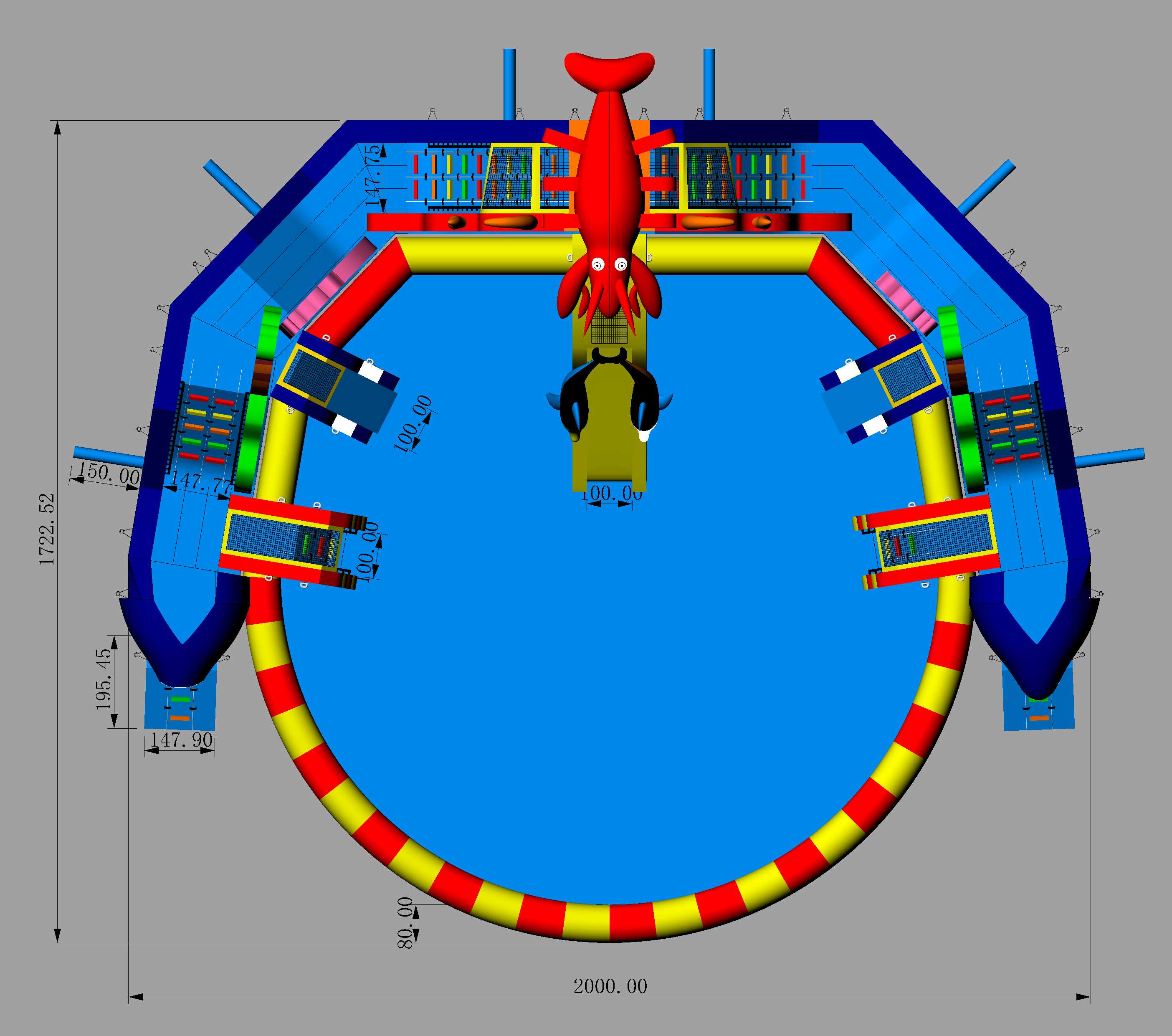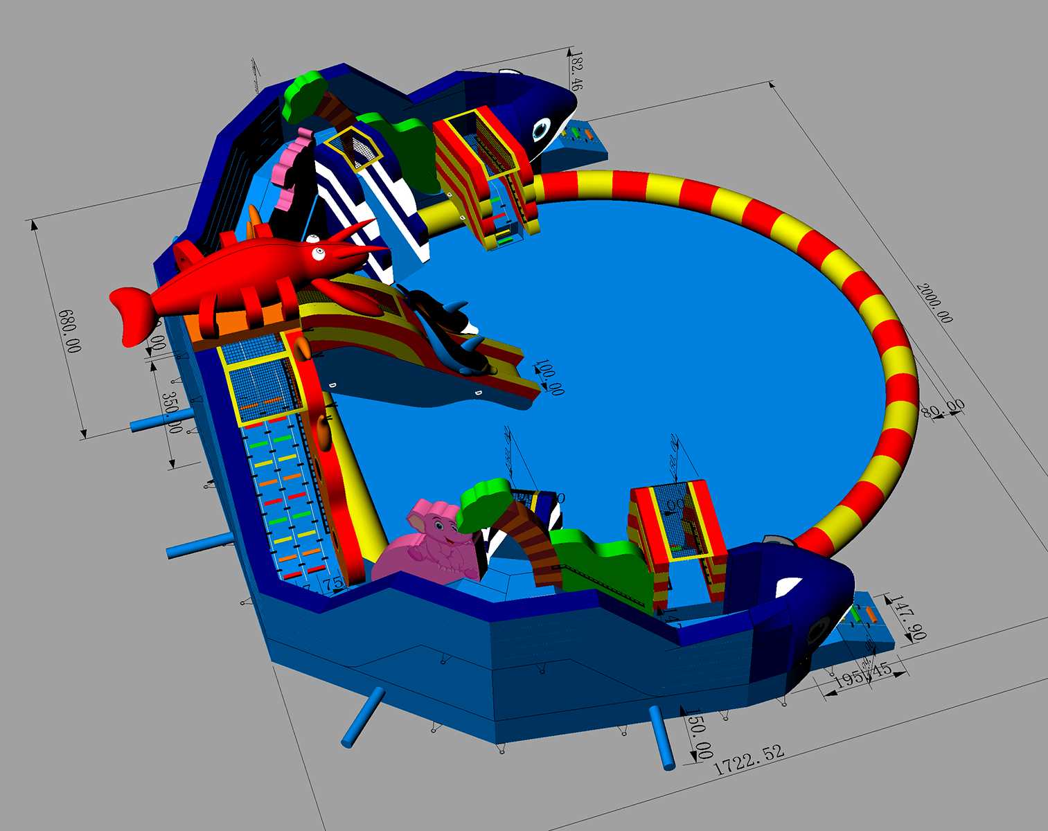 «Аквасфера» — это масштабный надувной аквапарк с тремя горками, красочным оформлением и продуманной архитектурой, рассчитанный на коммерческое использование в аквапарках, торговых центрах, отелях, парках и на выездных мероприятиях. Его размеры — 10х17х7 м — позволяют использовать аттракцион как основной развлекательный элемент на большой площади.