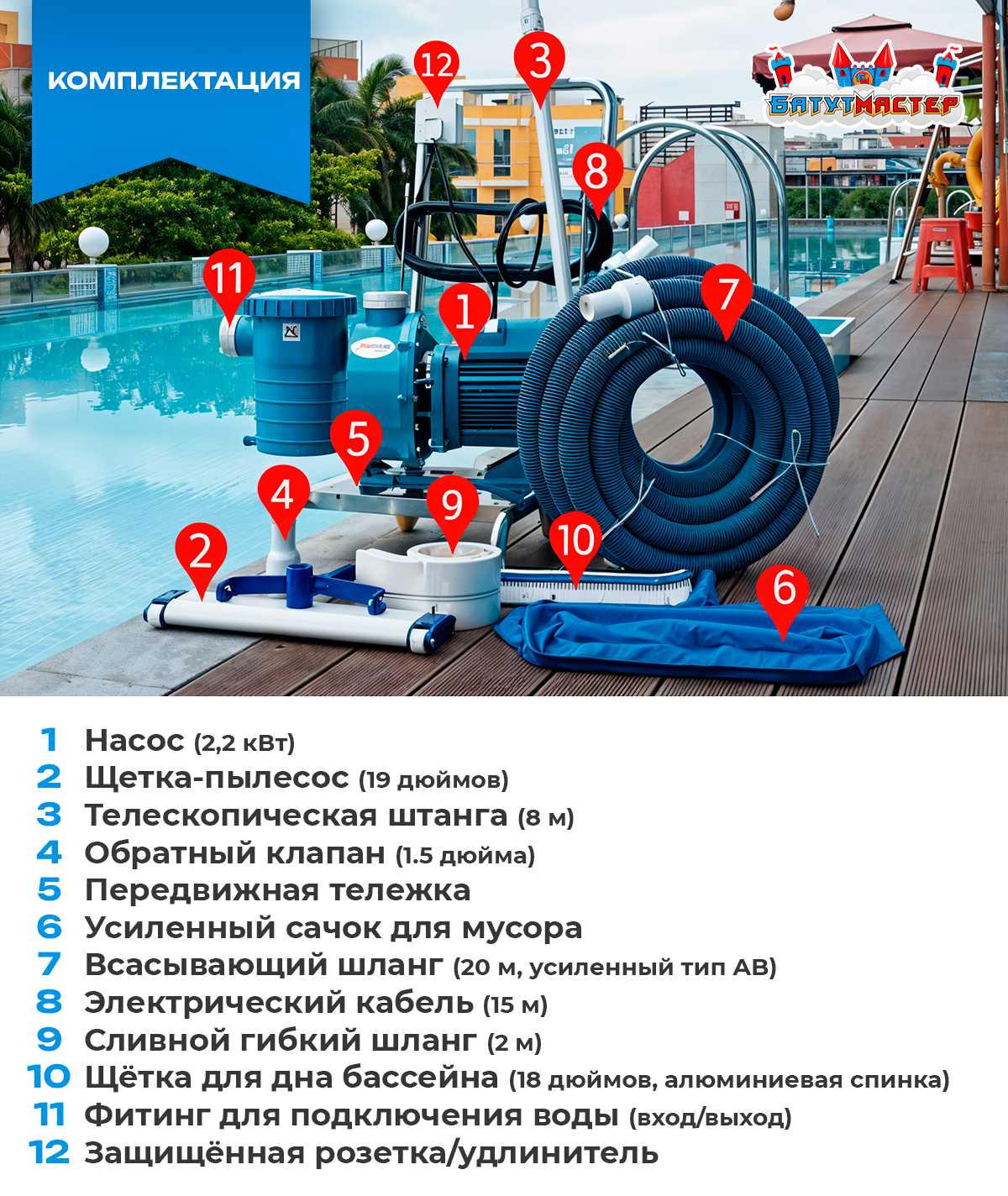 - Пылесос: Профессиональный для бассейнов