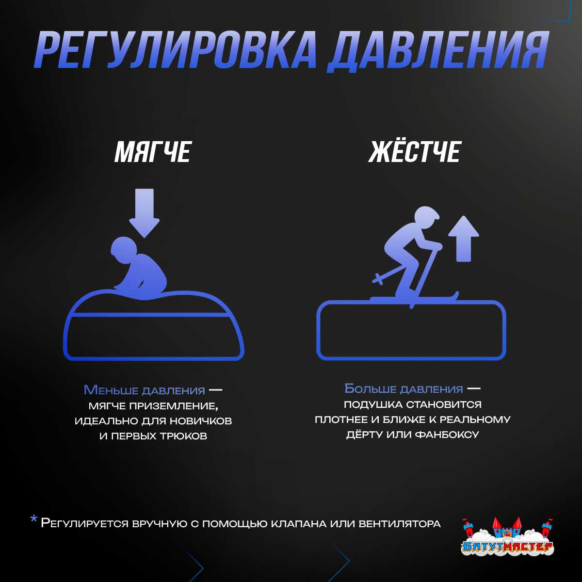 - Безопасная тренировка — мягкое приземление при любом трюке.