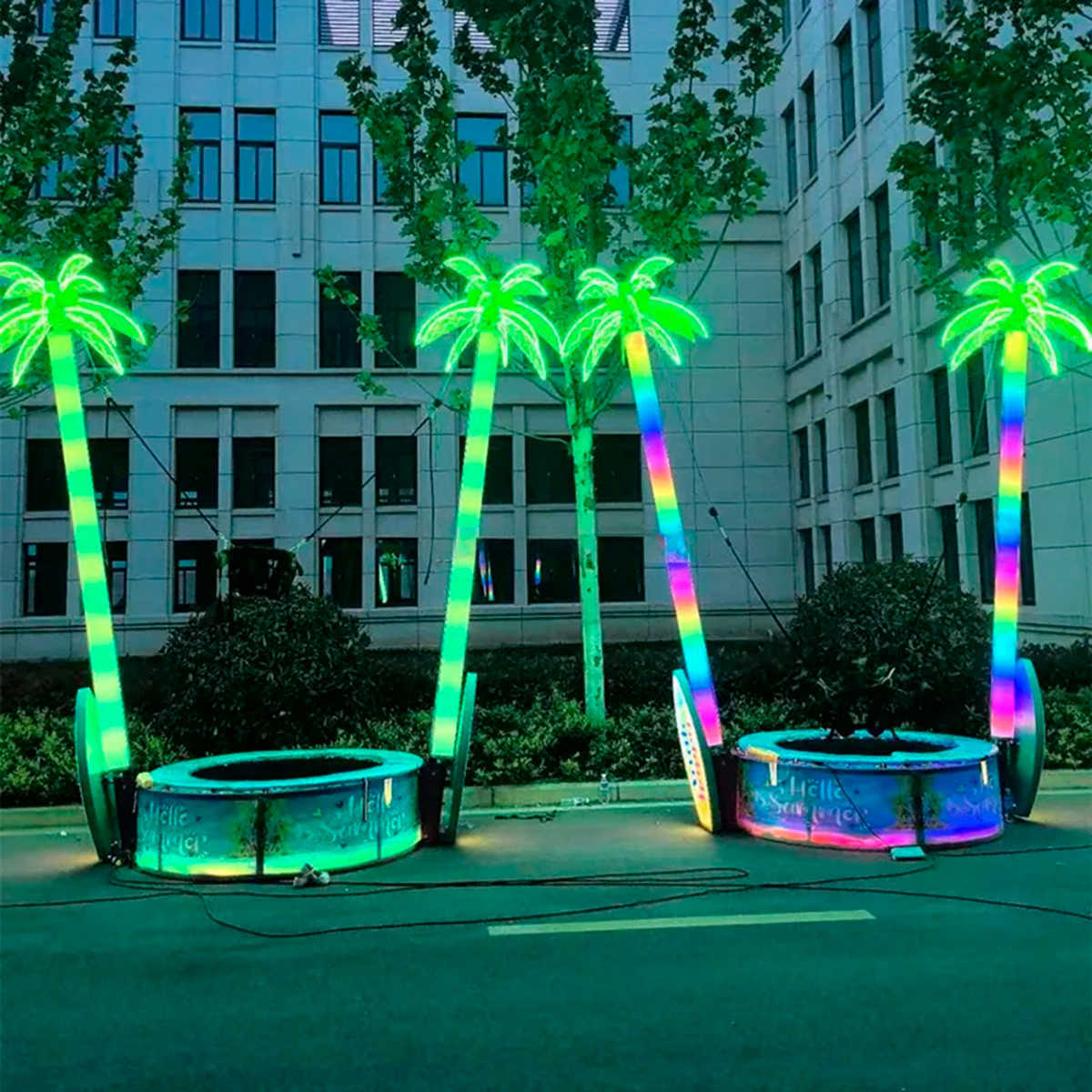 Банджи-батут «Тропический рай» — это современный односекционный аттракцион, созданный для коммерческого использования на открытых и крытых площадках. Светящиеся пальмы, эффектная LED-подсветка и красочный дизайн превращают его в настоящий остров радости! 🏝 Компактные размеры 2×2×4 м позволяют легко разместить батут даже на небольшой площади — он прекрасно подойдёт для ТРЦ, парков, набережных, баз отдыха и ярмарок.