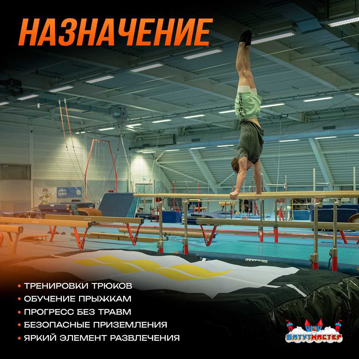 Надувная подушка «GymAir» — это современное спортивное оборудование, разработанное с учётом требований профессиональных гимнастов, тренеров и владельцев батутных центров. Её главная задача — сделать тренировочный процесс максимально безопасным, удобным и эффективным.
